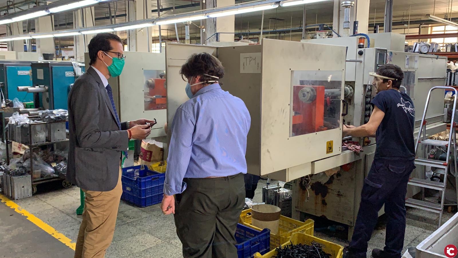 El alcalde de Elda, Rubén Alfaro, ha visitado esta semana las instalaciones de Indaca y ha agradecido el compromiso y esfuerzo que esta empresa de nuestra ciudad ha realizado en las actuales circunstancias para adaptar sus líneas de producción, pasando de fabricar hormas, tacones y otros componentes del calzado a producir estas viseras que aportan un plus de seguridad.