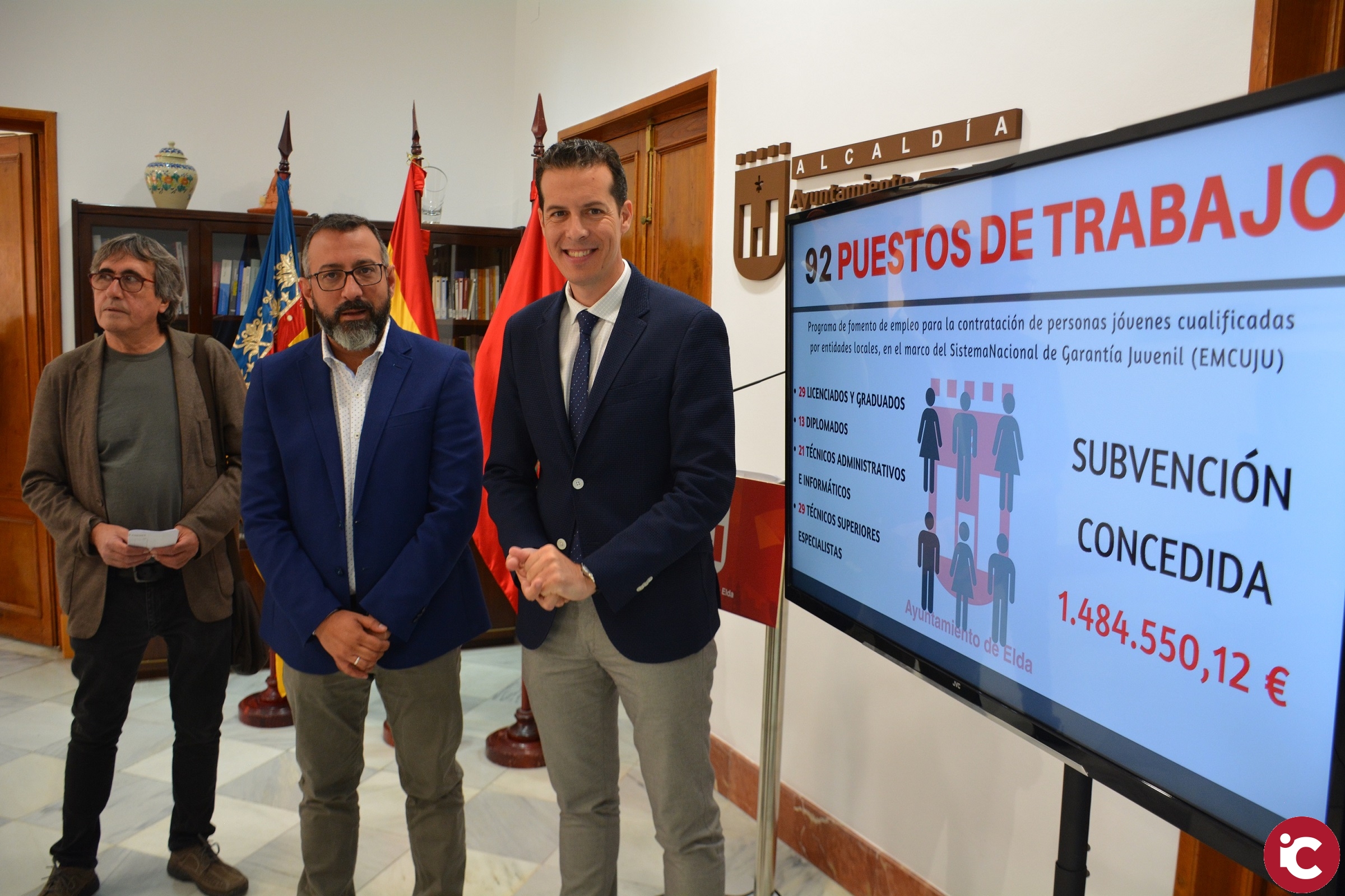 En esta ocasión, Elda es el tercer municipio que más subvención recibe, por detrás del Ayuntamiento de Valencia -más de 5 millones de euros- y el de Alicante -más de 3 millones-, y permitirá contratar a 92 jóvenes.