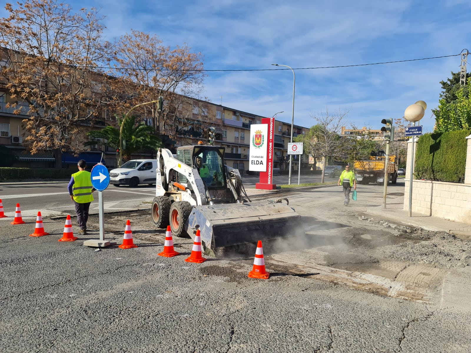 Sostenibles del Ayuntamiento de Elda ultima los detalles para finalizar las obras de mejora de la accesibilidad y el asfaltado en la avenida de los Eucaliptus, el vial de entrada a la ciudad que conecta con la avenida del Mediterráneo, y por el que cada día pasan centenares de vehículos.