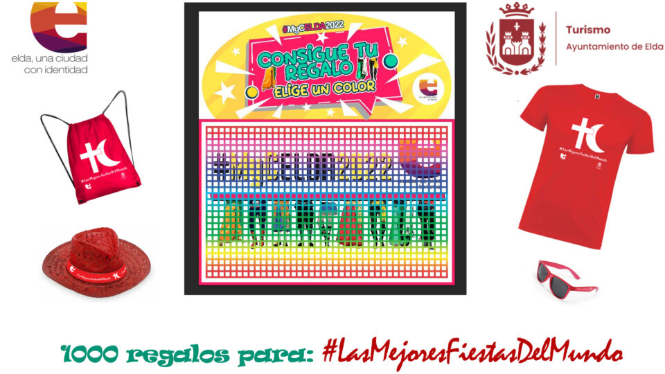 El Ayuntamiento de Elda, a través de la Concejalía de Turismo, ha puesto en marcha el concurso ‘Panel MyC Elda 2022-Consigue tu regalo-Elige tu color” con el objetivo de promocionar las fiestas de Moros y Cristianos 2022. Los participantes en el concurso podrán conseguir diferentes obsequios promocionales, como camisetas, sombreros, mochilas y gafas de sol.