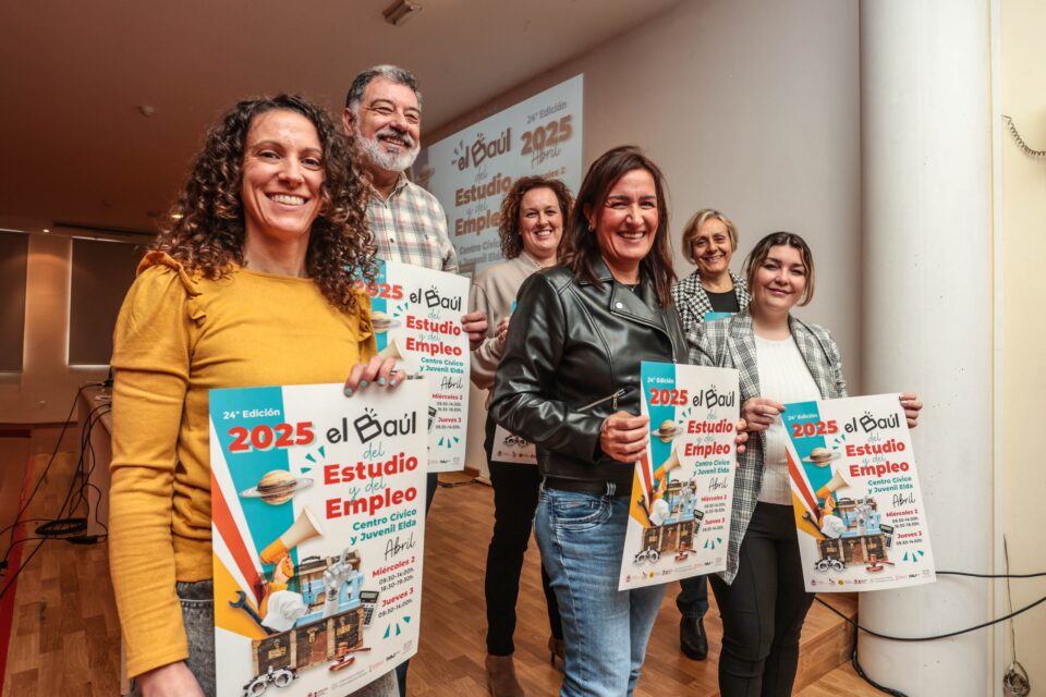 La 24ª edición del Baúl del Estudio y del Empleo se celebrará los días 2 y 3 de abril en el Centro Cívico y Juvenil y en la Plaza de la Ficia. Así lo ha anunciado esta mañana la concejala de Juventud, Anabel García, en una comparecencia en la que ha estado acompañada por representantes de los cuatro centros educativos de Elda en los que se imparte Formación Profesional: CIPFP Valle de Elda, IES Monastil, IES La Torreta e IES La Melva.