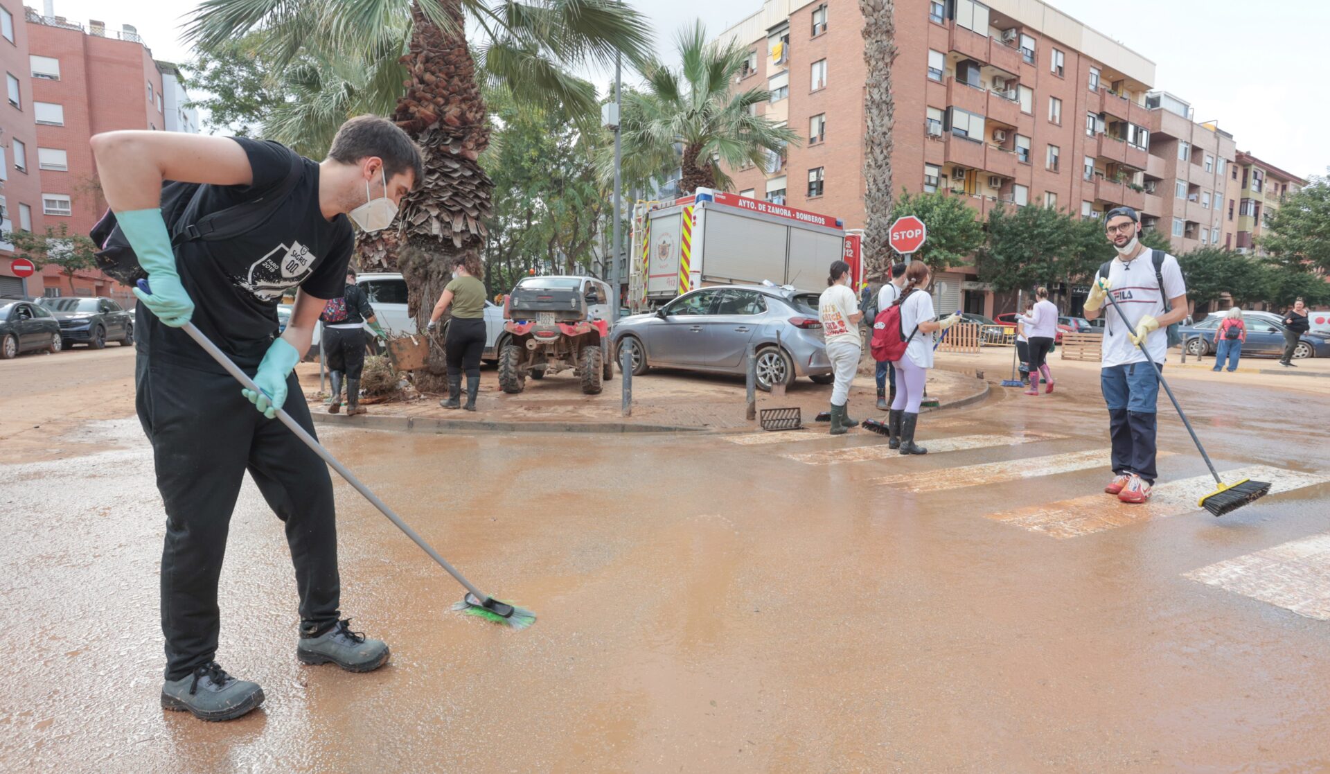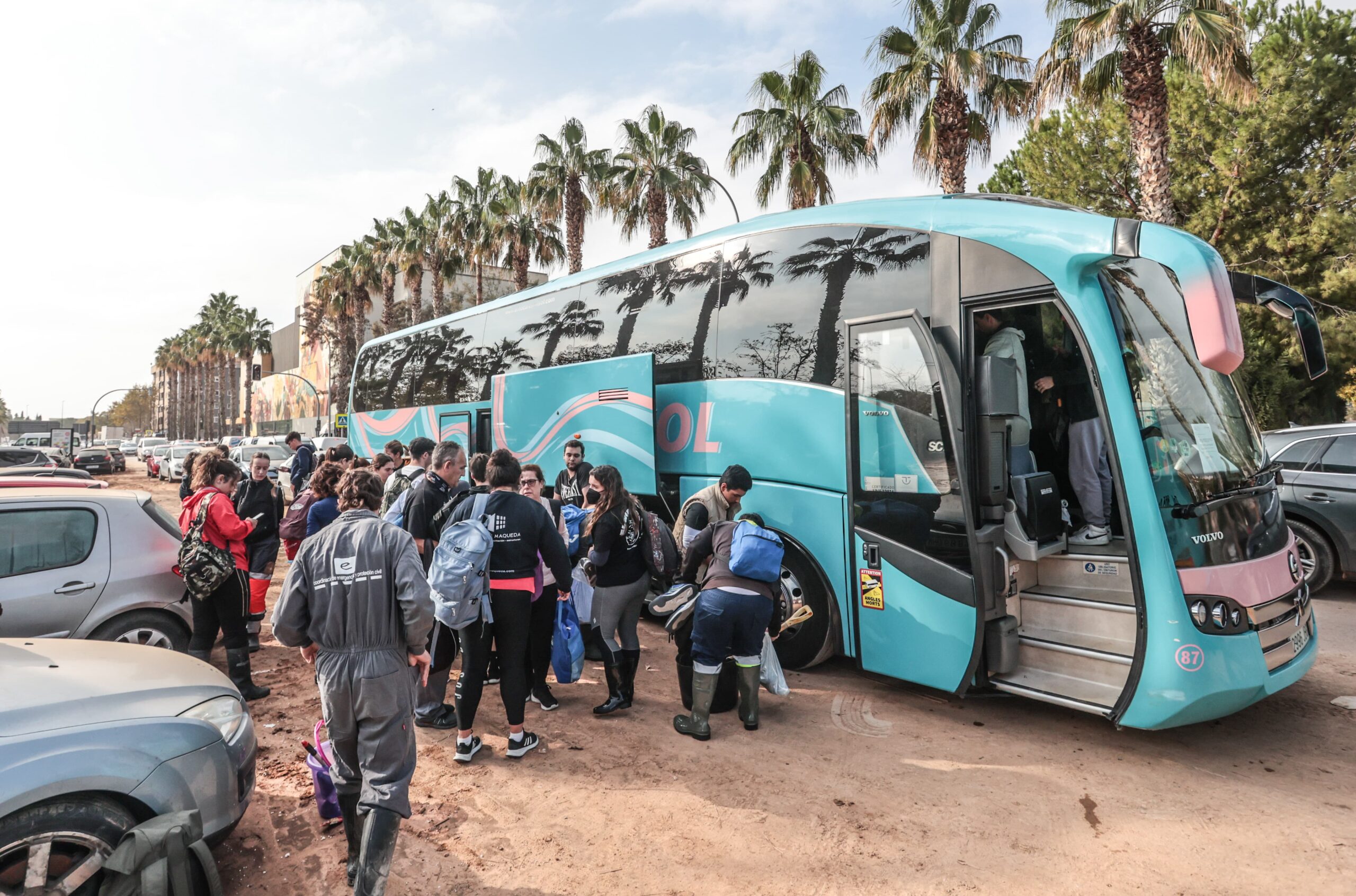El centenar de voluntarios y voluntarias con formación sanitaria y de emergencias desplazados hasta Aldaya colaboran en labores de limpieza de calles y viviendas de la localidad valenciana, una de las más afectadas por las inundaciones provocadas por la DANA. A primera hora de la mañana han partido desde la Plaza Ficia dos autobuses fletados por el Ayuntamiento de Elda, a través de las concejalías de Solidaridad y de Juventud, en la que se han desplazado los voluntarios y también se ha transportado material de limpieza, desinfección e higiene.