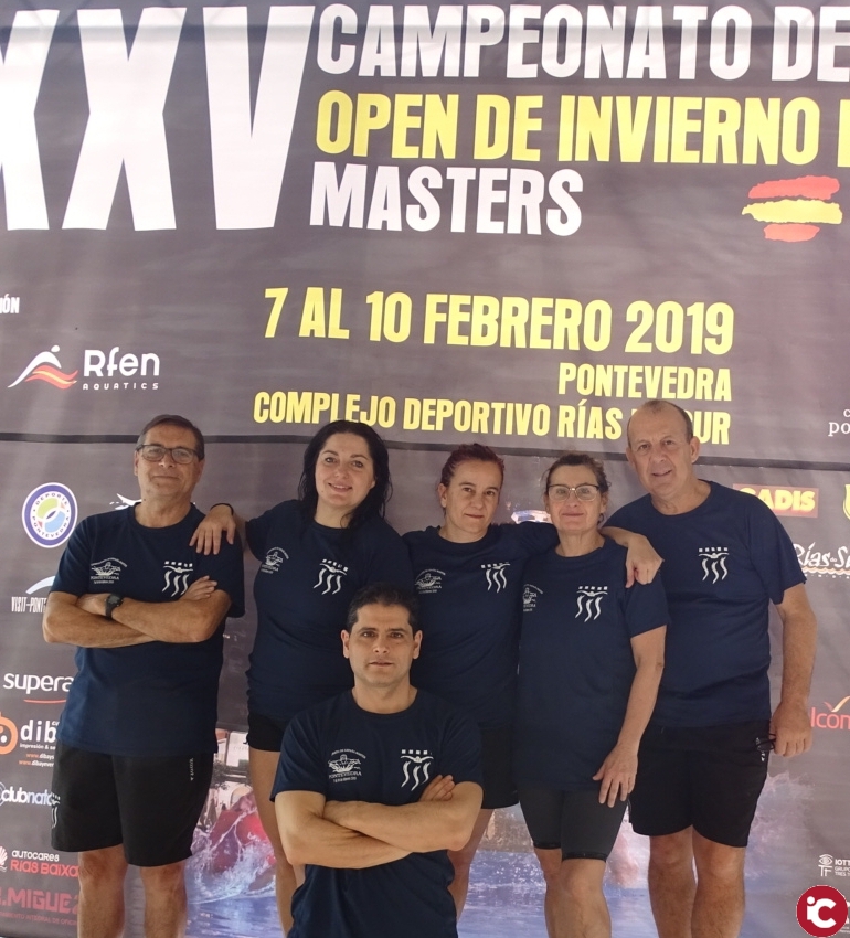 Se celebró en EL Complejos Deportivo Rías Do Sur de PONTEVEDRA el Nacional de Natación Master del 7 al 10 de febrero, con la participación de unos 1.200 nadadores, entre ellos seis integrantes del Club Natación Elda Master, INMACULADA NAVARRO que obtuvo bronce en 50 mariposa y 200 libres, JUAN MAESTRE bronce en 100 espalda, PEDRO CIVERA, MARIBEL CUENCA, CARLOS LAZARO Y TERESA NAVARRO que hizo su debut a nivel nacional Todos ellos rebajaron marcas, estando varios en el Top Ten.