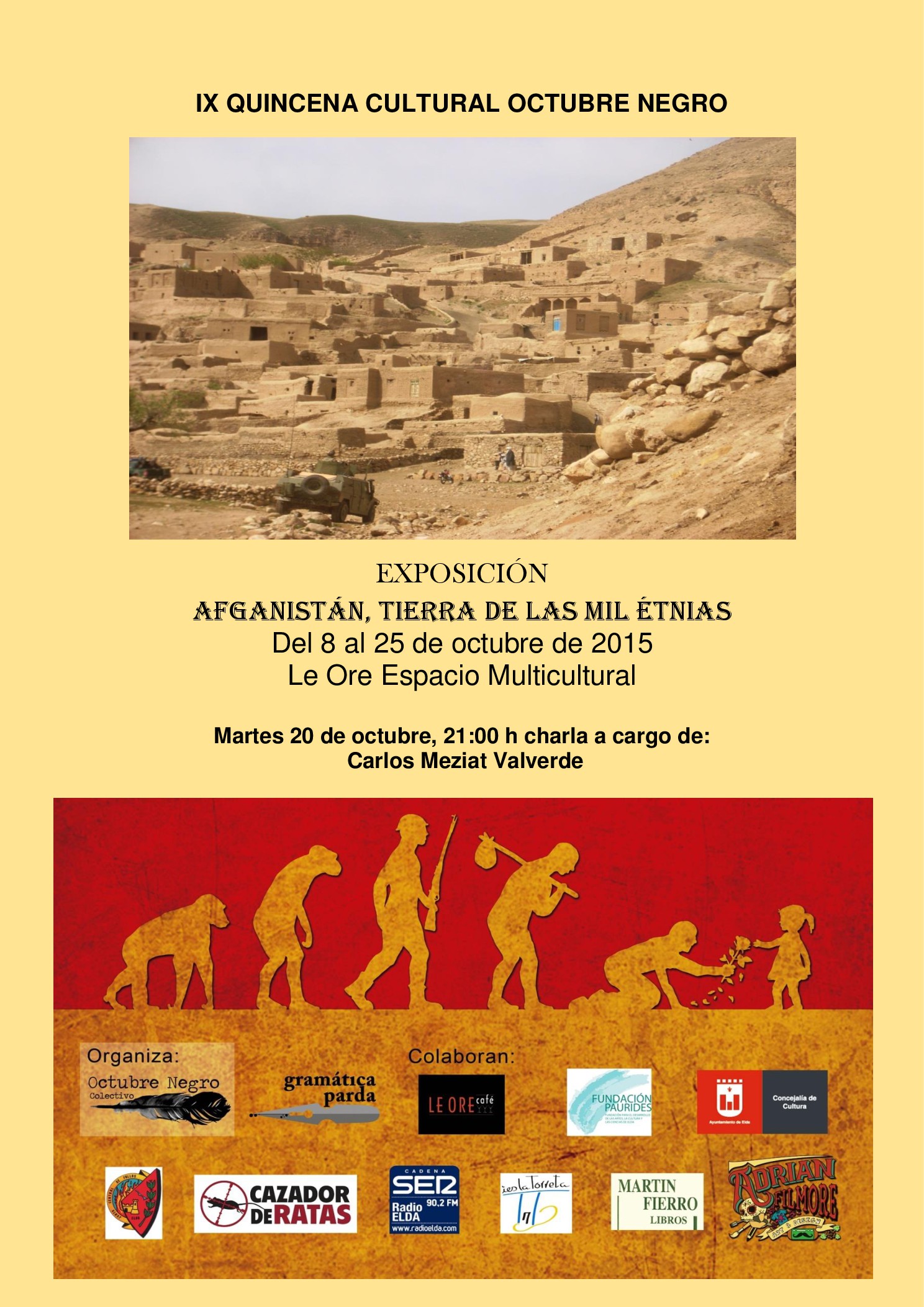 El martes 13 de octubre, también en Le Ore Espacio Multicultural, se inaugurará las 21,00 horas la exposición de fotografía del militar eldense Carlos Meziat titulada Afganistán, Tierra de las mil étnias. El martes siguiente, el día 20, el autor dará una charla sobre sus vivencias en ese país, en Le Ore Espacio Multicultural a las , 21:00 horas.