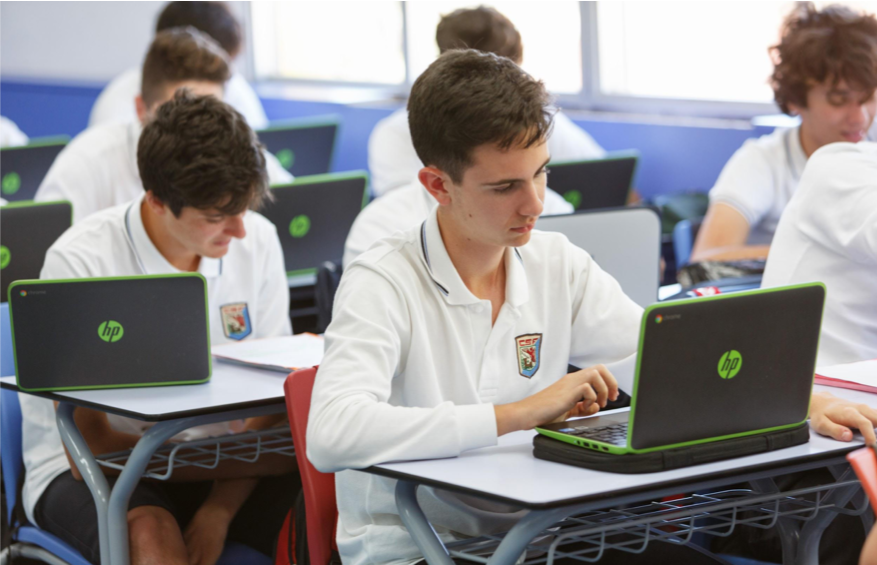 El coordinador TIC y su directora, Beatriz Montalbán, después de una extensa investigación, tomaron la decisión de implementar Chromebooks en el segundo ciclo de Secundaria. Utilizar toda la potencia de G-Suite era el objetivo fundamental, ya que les permitía utilizar esa tecnología abierta que podían usar libremente en cualquier disposiivo que tuvieran en el centro.