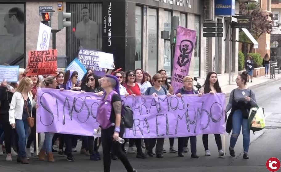 Una gran parte de la manifestación ha estado formada por mujeres de todas las edades realizando el recorrido lleno de cánticos. El final del recorrido ha sido la Plaza Castelar de Elda, donde diversos colectivos han leído sus manifiestos pero con un lema conjunto «Si las mujeres paran, se para el mundo».