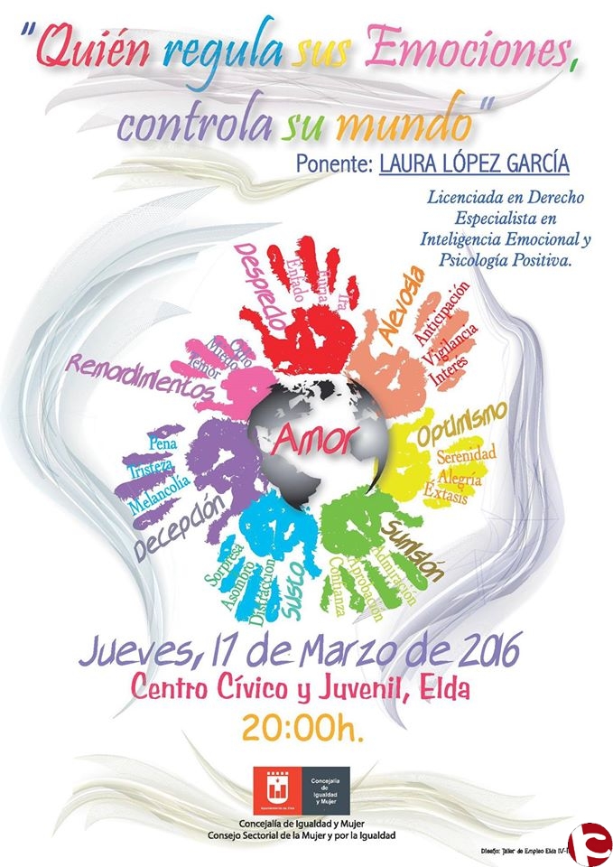 El Consejo Sectorial de la Mujer y por la Igualdad y la Concejalía de Igualdad y Mujer del Excmo. Ayuntamiento de Elda, dentro de la programación de actos conmemorativos del Día Internacional de la Mujer, organiza la conferencia “Quien regula sus emociones, controla su mundo”