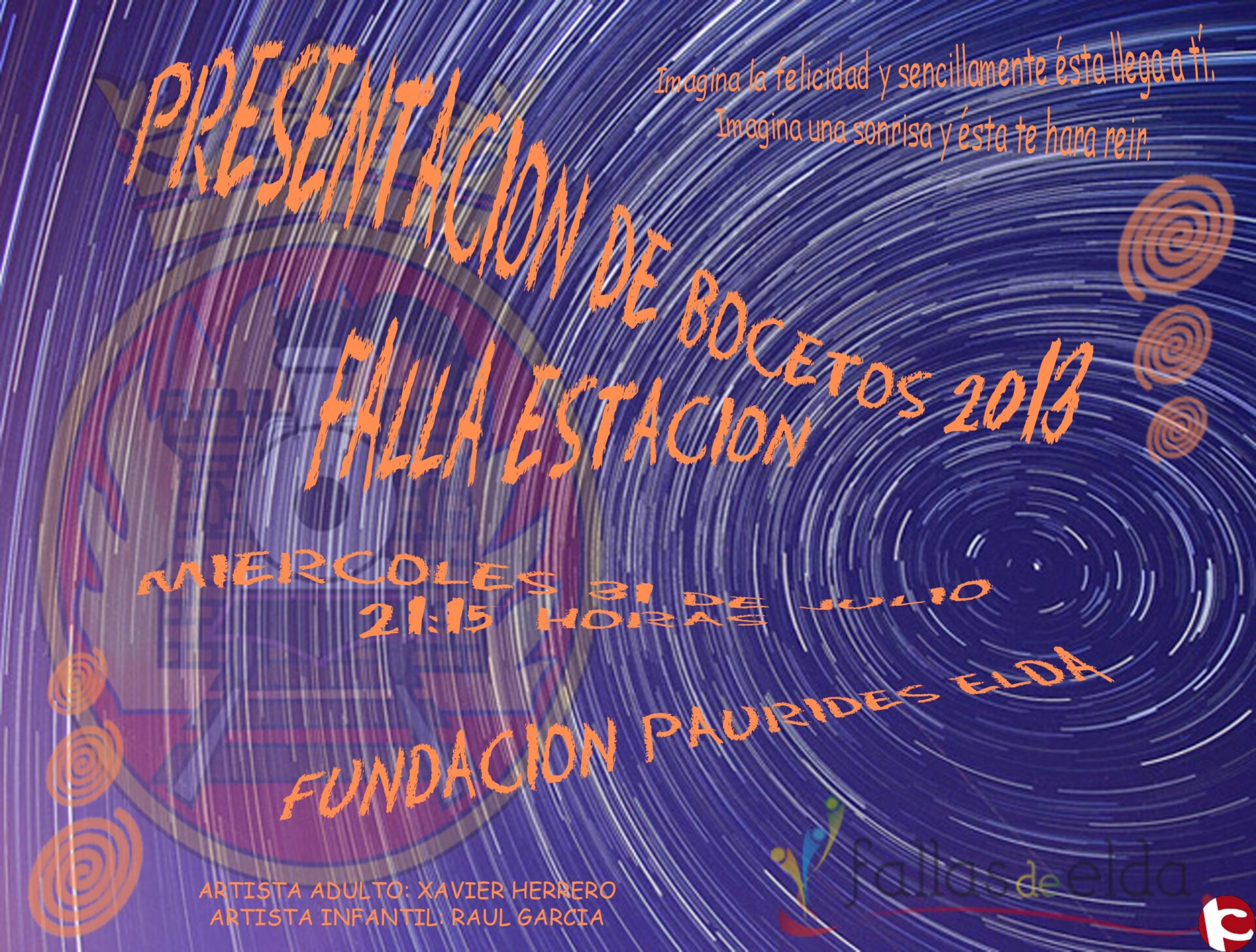 La Falla Estación les saluda y les informa que el próximo 31 de julio en la Fundación Paurides de Elda a las 21:15 horas, tendrá lugar la presentación de bocetos de los que serán nuestros monumentos 2013, obras de Xavier Herrero para el monumento adulto y Raúl García en el infantil.