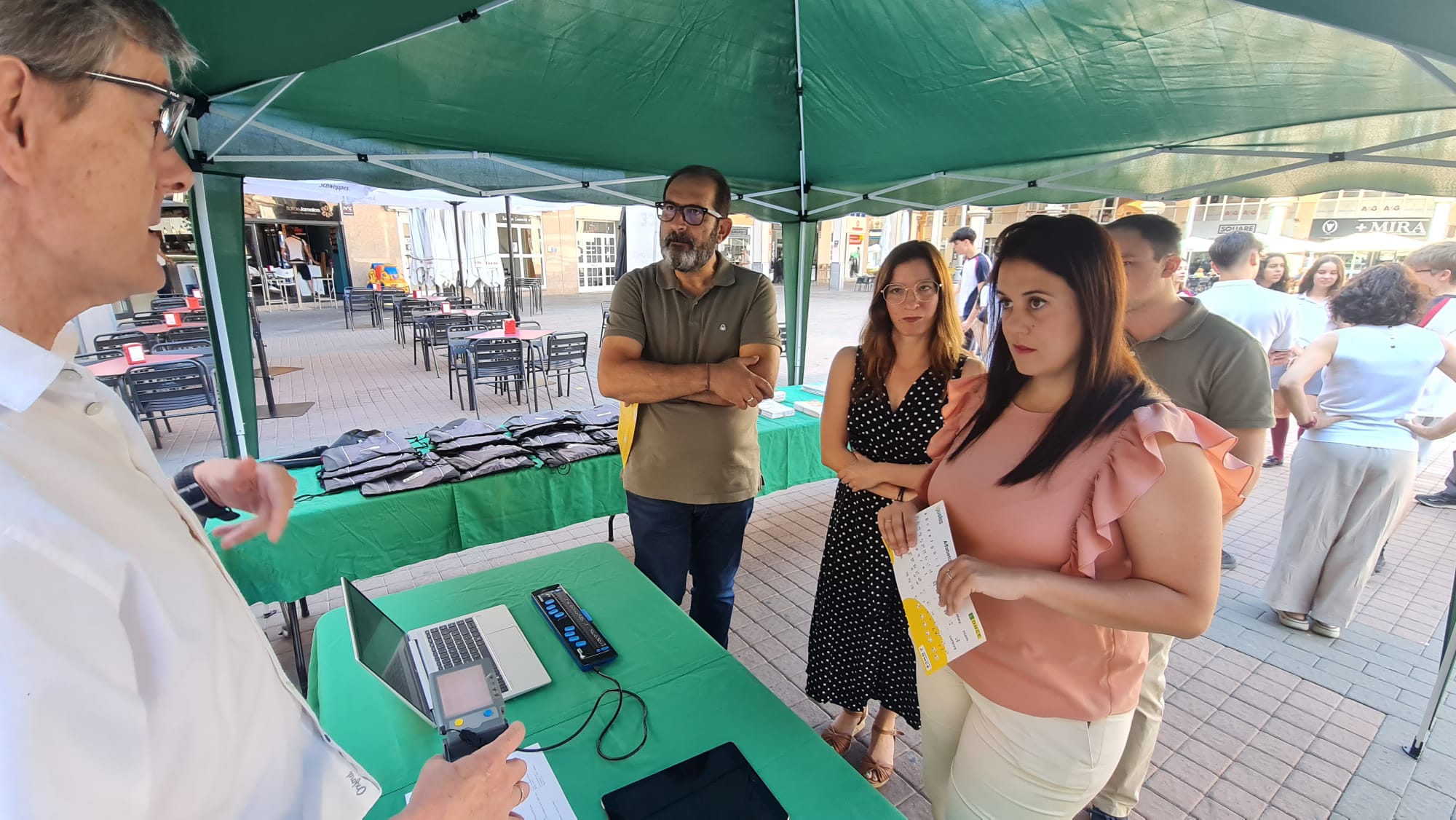 Las carpas del Grupo Social ONCE han estado instaladas toda la mañana en la Plaza Mayor de Elda, por donde han pasado, además de la ciudadanía en general, varios grupos de alumnos y alumnas de centros educativos de Elda.
