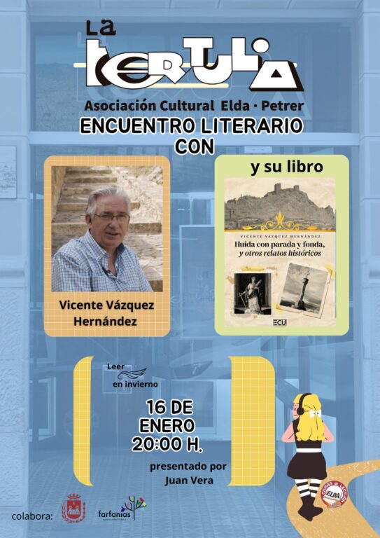 La Asociación Cultural La Tertulia de Elda y Petrer inicia el nuevo año literario con la presentación de ‘Huida con parada y fonda, y otros relatos históricos’, el último libro publicado por Vicente Vázquez Hernández, bibliotecario-archivero municipal de la localidad de Sax, que tendrá lugar el próximo jueves 16 de enero, a las 20:00 horas.