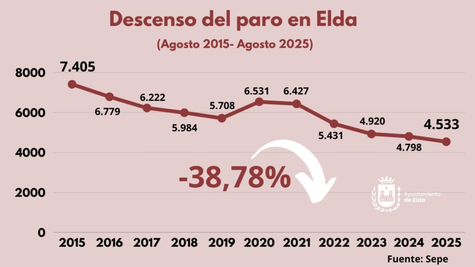 Cabe recordar que el crecimiento y consolidación del mercado laboral eldense ha llegado de la mano de un incremento de la población, ya que los datos del Padrón Municipal correspondientes a 1 de enero de 2025 indican que en Elda residen 55.157 personas, una cifra que no se alcanzaba desde el año 2009 cuando 55.168 personas estaban empadronadas en la ciudad.