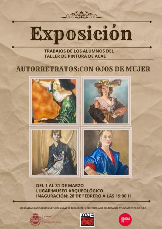 El Museo Arqueológico de Elda acoge una nueva exposición titulada ‘Autorretratos con ojos de mujer’, organizada por la Concejalía de Cultura del Ayuntamiento de Elda y la Asociación Cultural Aulas Elda. Esta muestra reúne los trabajos del alumnado del taller de pintura, quienes han plasmado en sus cuadros la mirada de mujeres artistas a lo largo de la historia del arte.