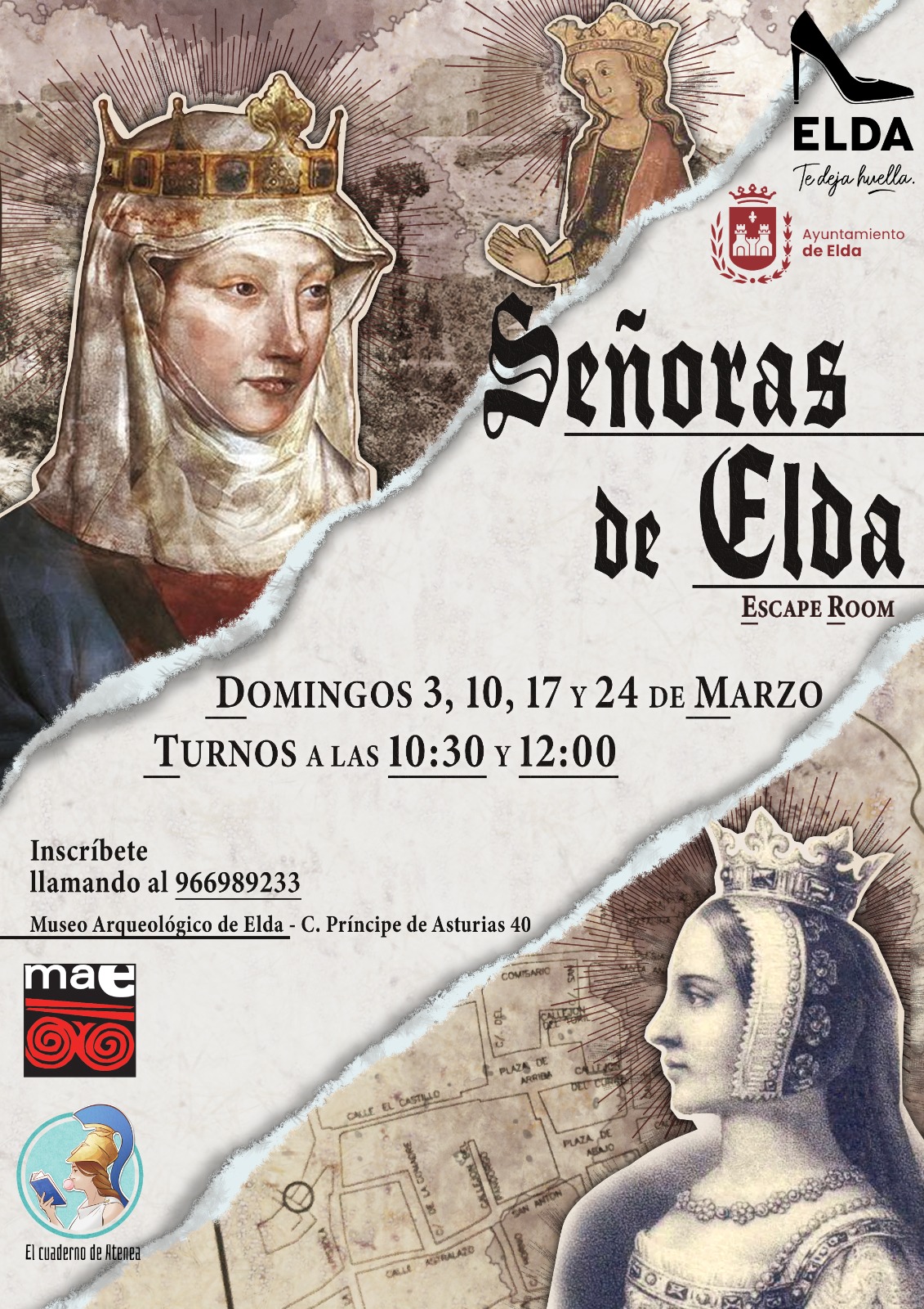 Se trata de un ‘scape–room’ en el que se ubicará a los participantes en una habitación del MAE y tendrán que ir descubriendo ‘pistas’ para poder salir. “Esta actividad tiene como objetivo dar a conocer la vida y obra de tres mujeres que además de ser reinas consortes de la corona de Aragón fueron Señoras de Elda, ellas son Blanca de Anjou, Sibila de Fortia y Violante de Bar”, ha expuesto el concejal.