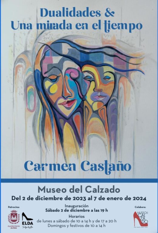 30 de noviembre de 2023.- El Museo del Calzado de Elda acoge a partir del sábado la exposición ‘Dualidades y una mirada en el tiempo’, una muestra que reúne 75 obras de la artista eldense Carmen Castaño y que está dividida en dos partes: una primera con sus obras más recientes y la segunda con las obras que ha realizado a lo largo de cinco décadas.