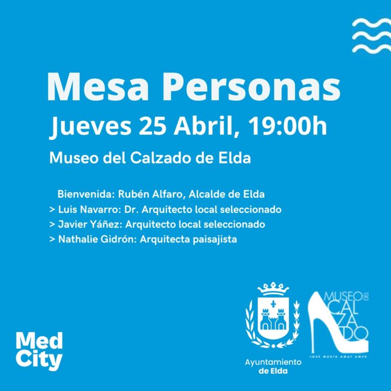 El Museo del Calzado de Elda acoge este viernes, a partir de las 19.00 horas, una de las mesas redondas incluidas en la programa del MedCity, un evento organizado por la Comisión Europea que se ha celebrado en Alicante en el que se muestra, desde una perspectiva mediterránea, los valores de la nueva Bauhaus Europea. MedCity es un encuentro satélite de The Festival of The New European Bauhaus que se celebra en Bruselas.