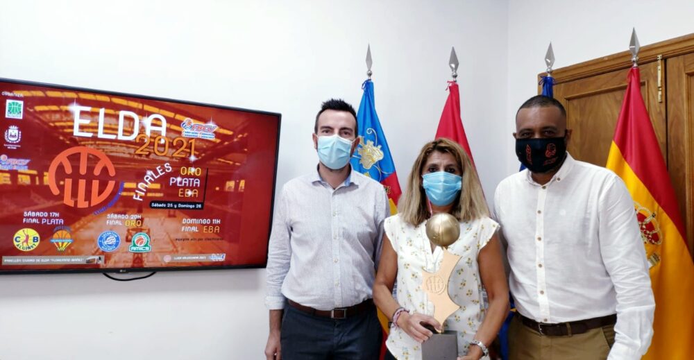 15 de septiembre de 2021.- EEl Pabellón Ciudad de Elda ‘Florentino Ibáñez’ será la sede de las Finales de la Lliga Valenciana Oro, Lliga Valenciana Plata y Lliga Valenciana EBA, organizadas por la Federación de Baloncesto de la Comunitat Valenciana (FBCV) con la colaboración del Ayuntamiento de Elda y el Club Baloncesto Elda. El concejal de Deportes de Elda, Fernando Gómez; el delegado de la FBCV en Alicante, Juan Miguel Sila; y la presidenta del CB Elda, Susana Herrera, han presentado esta mañana una competición que se desarrollará los días 25 y 26 de septiembre.