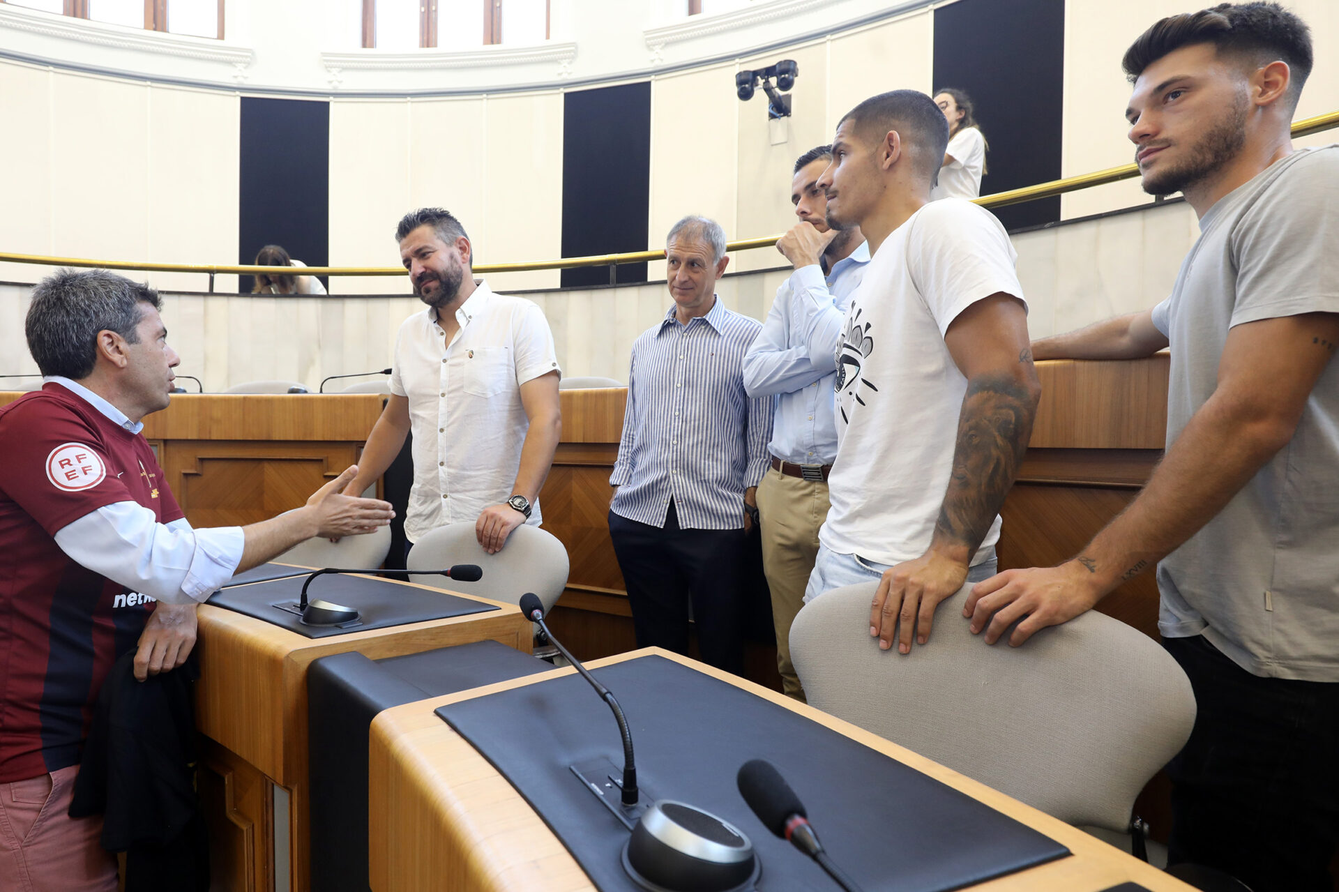 Durante el transcurso del acto, celebrado en el Salón de Plenos, el presidente ha entregado a los jugadores una insignia de la Diputación, mientras que ellos le han regalado una camiseta del club con su nombre y el número 31 en la espalda, en referencia al número de diputados que integran la corporación provincial.