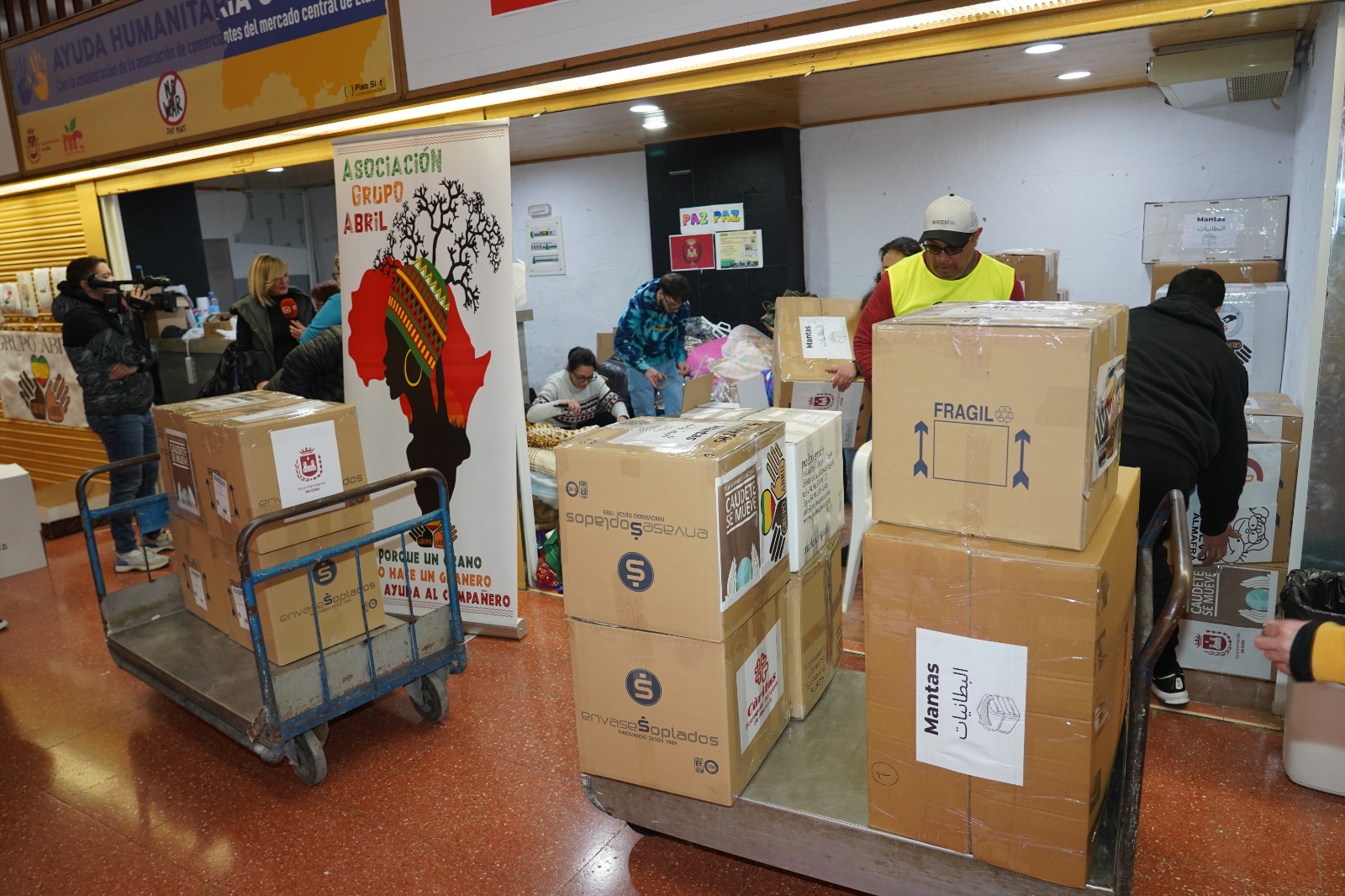 14 de febrero de 2023.- El primer convoy con ayuda para los afectados por los terremotos de Turquía y Siria, donde se registra una crisis humanitaria con miles de muertos y heridos y cientos de miles de personas que lo han perdido todo. La ayuda humanitaria ha sido recogida desde el pasado jueves en los tres puestos del Mercado Central de Elda cedidos al Grupo Abril por el Ayuntamiento de Elda, a través de la Concejalía de Comercio y Mercados.