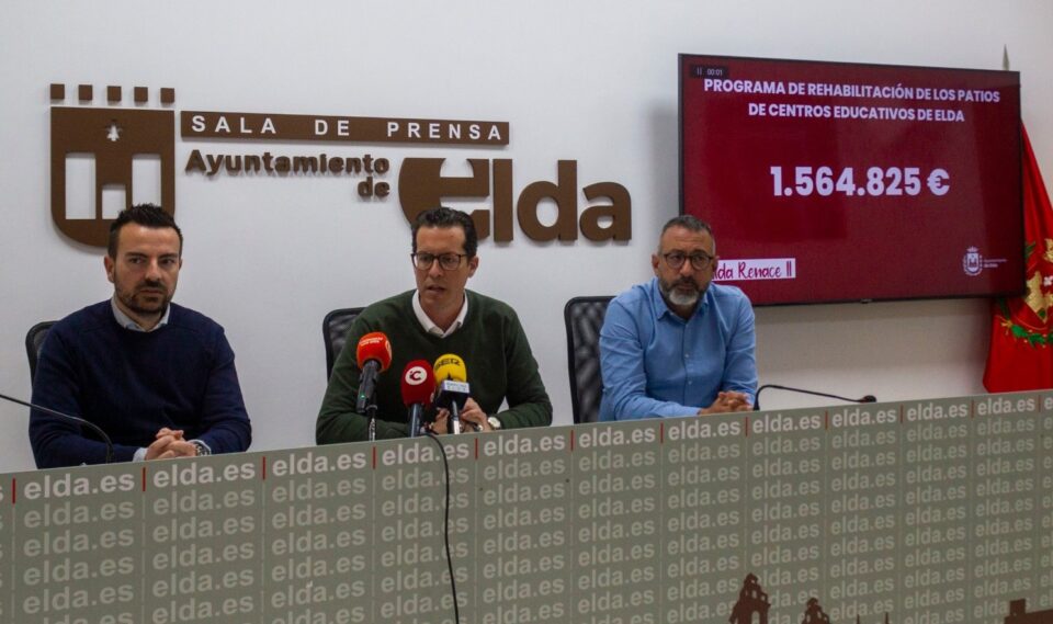 El alcalde de Elda, Rubén Alfaro, ha presentado esta mañana el programa de rehabilitación de patios de centros educativos de la ciudad, una iniciativa incluida en el Plan Elda Renace II que el Ayuntamiento de Elda pone en marcha a través de la Concejalía de Inversiones y Servicios Públicos Sostenibles.