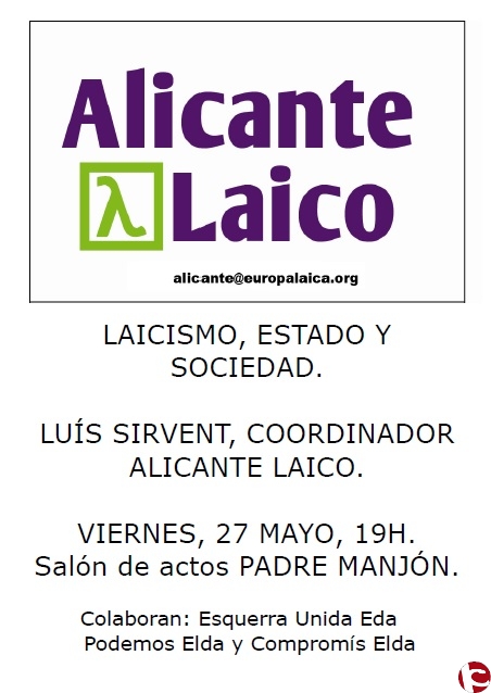 En vistas de la importancia que en otros países europeos tiene esta concepción de la Administración, desde Podemos, Compromís y Esquerra Unida de Elda hemos invitado a Luís Sirvent, presidente de Alicante Laico-Europa Laica, a organizar este acto público e ilustrarnos sobre la cuestión.