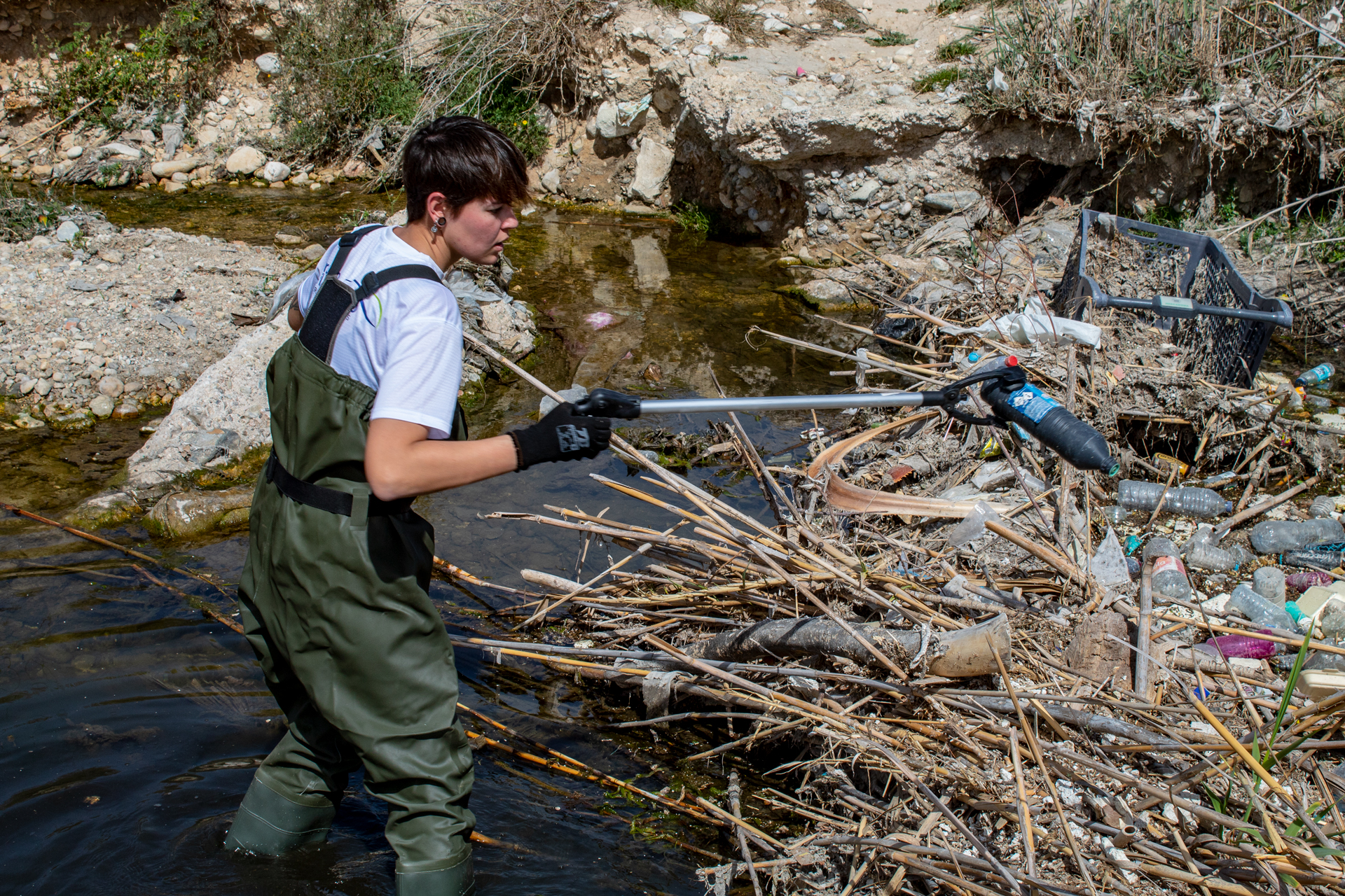 Viernes, 22 de marzo de 2024. Hoy se ha promovido una actividad de recogida de residuos en las inmediaciones del cauce del río Vinalopó a su paso por Elda, en la que han participado voluntarios que se han sumado a esta iniciativa, auspiciada por la Concejalía de Medio Ambiente del Ayuntamiento de Elda en el marco del proyecto Libera de SEO-Bird Life ‘1m2 por la basuraleza’.