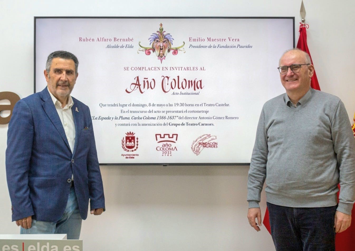 El Año Coloma llega este domingo a uno de sus momentos centrales con la celebración del Acto Institucional que tendrá lugar a las 19.30 horas en el Teatro Castelar. El concejal de Cultura, Amado Navalón, y el presidente de la Fundación Paurides, Emilio Maestre, han dado a conocer los detalles de un acto en el que se presentará el cortometraje ‘La Espada y la Pluma. Carlos Coloma 1566-1637’, realizado por Antonio Gómez Romero.