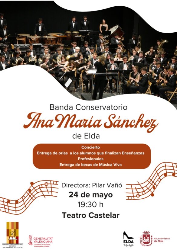 Además, en el transcurso del concierto se hará entrega de las becas del proyecto de Música Viva y de las orlas a los alumnos que finalizan las enseñanzas Profesionales en el Conservatorio. El concejal de Cultura ha animado a la ciudadanía a “apoyar el talento eldense y a disfrutar de la cultura que nace y crece en nuestra ciudad y forma parte de la identidad de Elda”.