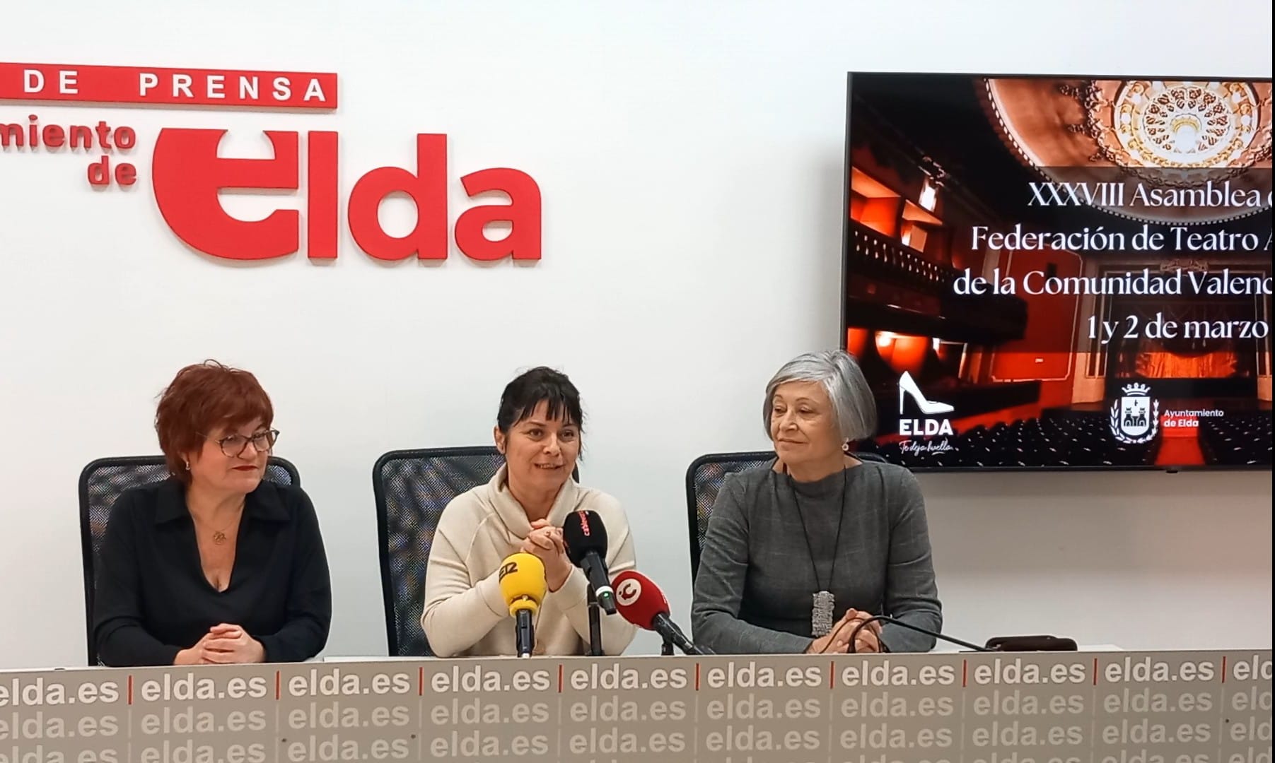 La concejala de Teatro, Rosa Vidal, acompañada por la presidenta de la FTACV, Teresa Cerdá, y de Sacra Leal, en representación de Carasses Teatro, ha afirmado que «es muy ilusionante acoger esta cita anual que da visibilidad a la Federación y a todos los grupos de teatro amateur. Es un año muy especial para Elda porque Carasses cumple, además, su 40 aniversario y es muy bonito celebrar dando acogida a más de 200 personas llegadas de toda la Comunidad».