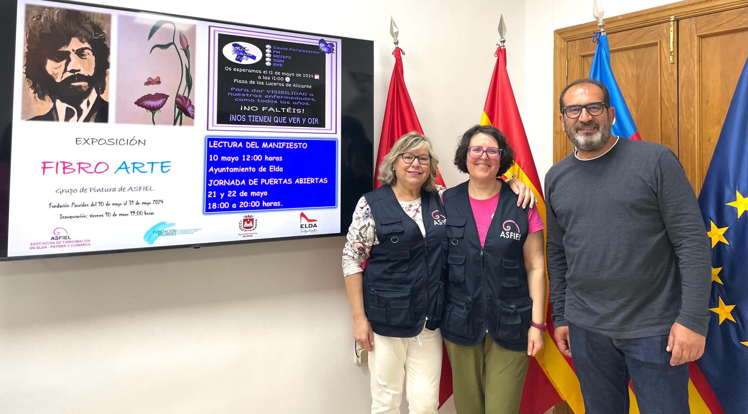 Elda celebrará el próximo viernes el Día Internacional de la Fibromialgia, que se conmemora el 12 de mayo, con la lectura de un manifiesto en la Plaza de la Constitución. El acto, que tendrá lugar a las 12.00 horas en la Plaza de la Constitución, ha sido anunciado esta mañana por el concejal de Bienestar Social, David Guardiola, quien ha estado acompañado por la presidenta y la vicepresidenta de la Asociación de Fibromialgia de Elda-Petrer y Comarca (ASFIEL), Cristina Jarque y Conchi Parada, respectivamente.