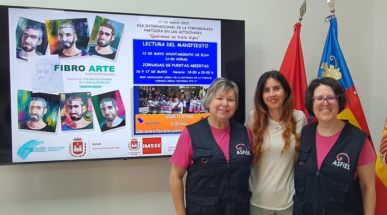 8 de mayo de 2023.- Elda conmemorará el Día Internacional de la Fibromialgia, que se celebra el 12 de mayo, con la lectura ese mismo día de un manifiesto en la Plaza de la Constitución. El acto, que tendrá lugar a las 12.00 horas en la Plaza de la Constitución, ha sido anunciado esta mañana por la concejala de Bienestar Social, Alba García, quien ha estado acompañada por la presidenta de la Asociación de Fibromialgia de Elda-Petrer y Comarca (ASFIEL), Cristina Jarque.
