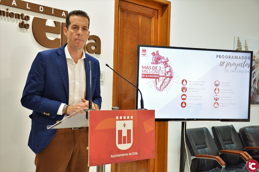 El alcalde de la ciudad, Rubén Alfaro, ha anunciado el mayor plan de inversiones con recursos propios de los últimos 15 años, que contará con un presupuesto que asciende hasta los 3,2 millones de euros para infraestructuras. En total, se van a afrontar 18 actuaciones por toda la ciudad, dentro del marco de las inversiones financieramente sostenibles, que responden a las demandas de los diferentes barrios y asociaciones de Elda y que están destinadas a satisfacer la calidad de vida de los vecinos de la ciudad.