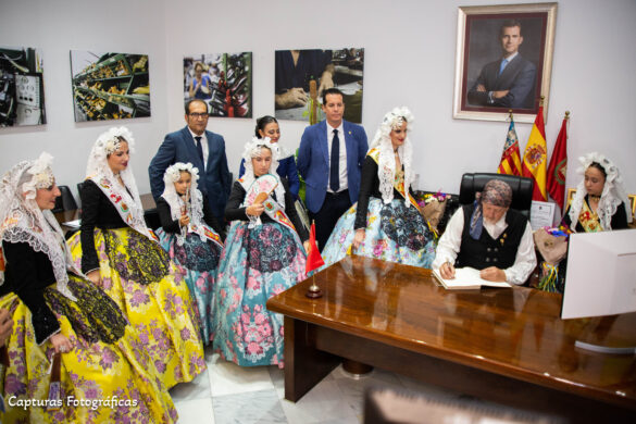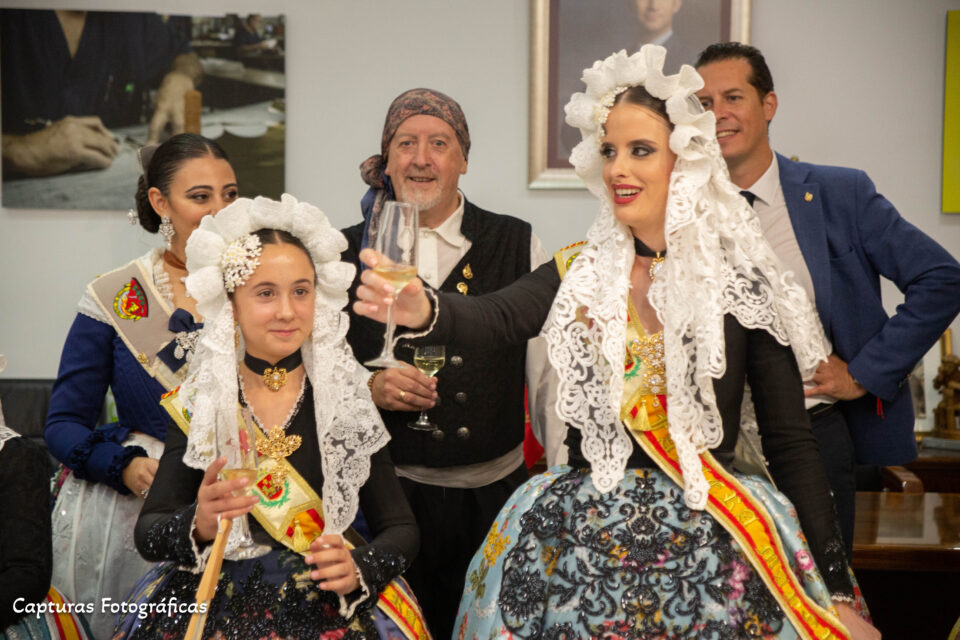 El evento comenzó con una cálida recepción por parte del Ayuntamiento, que obsequió a los cargos de las comisiones y a las Falleras Mayores de Elda y sus Damas de Honor con un hermoso recuerdo de este año: el boceto de la Falla Oficial 2023. Un gesto que simboliza la unión de la ciudad en torno a sus fiestas más queridas.