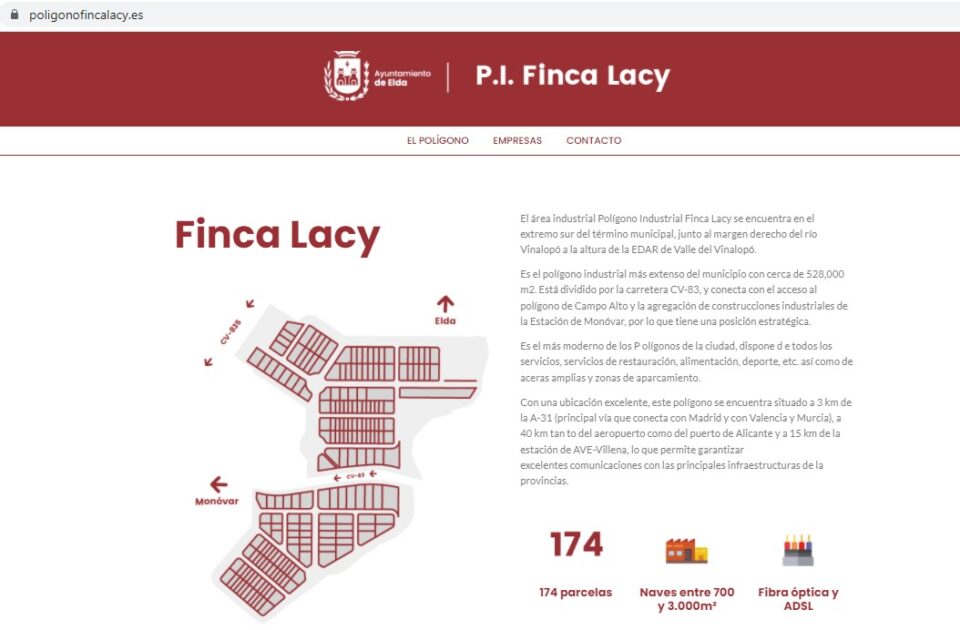El Ayuntamiento de Elda, a través de las Concejalías de Servicios Públicos Sostenibles y de Fomento Económico, Industria y Empleo, continúa con la mejora y modernización de los polígonos industriales de Campo Alto, Finca Lacy y Torreta-Río y con el objetivo de darles visibilidad en internet ha creado páginas web para cada uno de ellos.