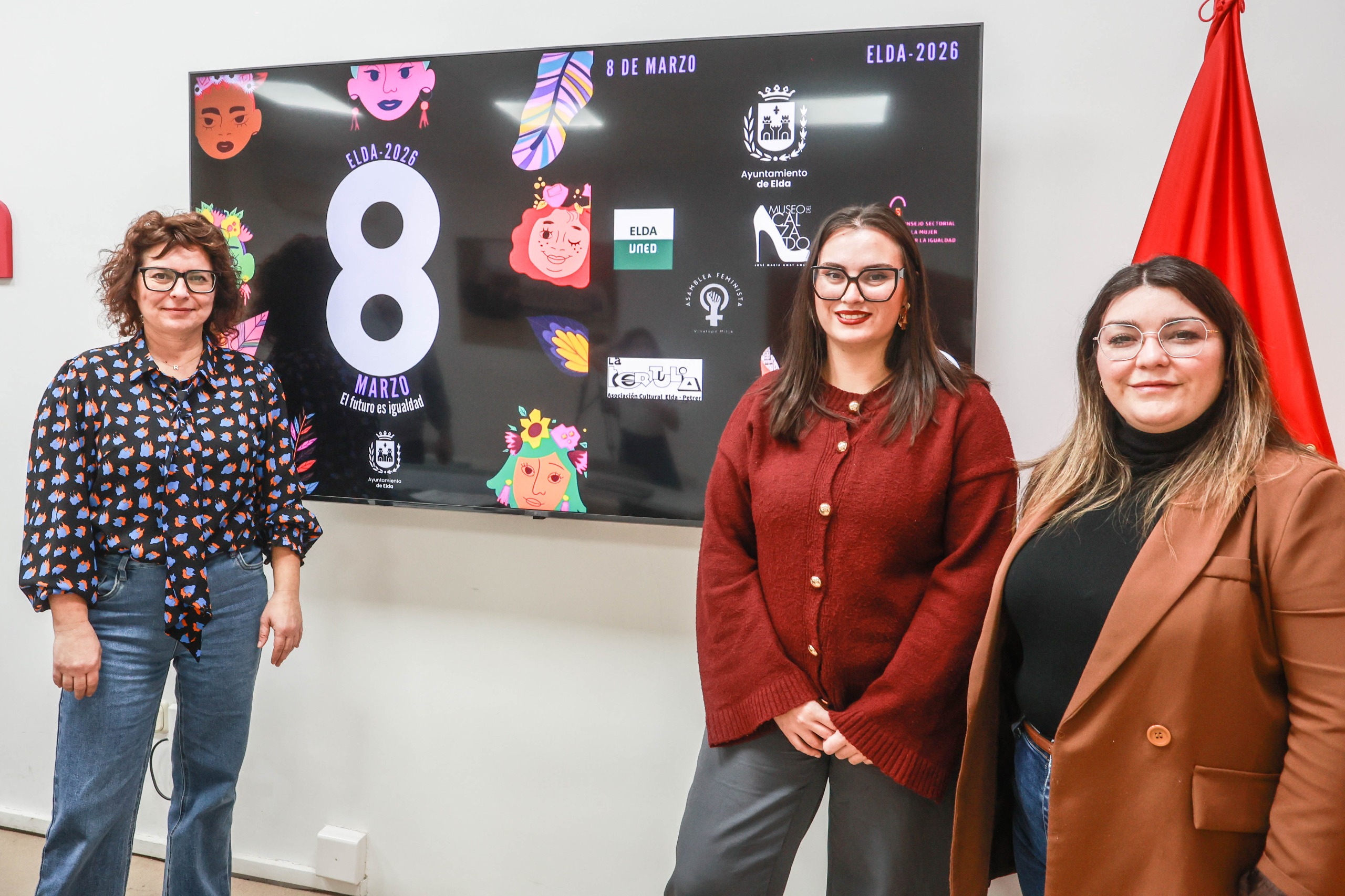 El Ayuntamiento de Elda, a través de las Concejalías de Igualdad, Teatro y Juventud, ha presentado la programación organizada con motivo del Día Internacional de la Mujer. La rueda de prensa ha sido ofrecida por la concejala de Igualdad, María Gisbert, acompañada de la concejala de Teatro, Rosa Vidal, y de la concejala de Juventud, Anabel García, quienes han dado a conocer un calendario de actividades que se desarrollará del 2 al 31 de marzo en diferentes espacios de la ciudad.