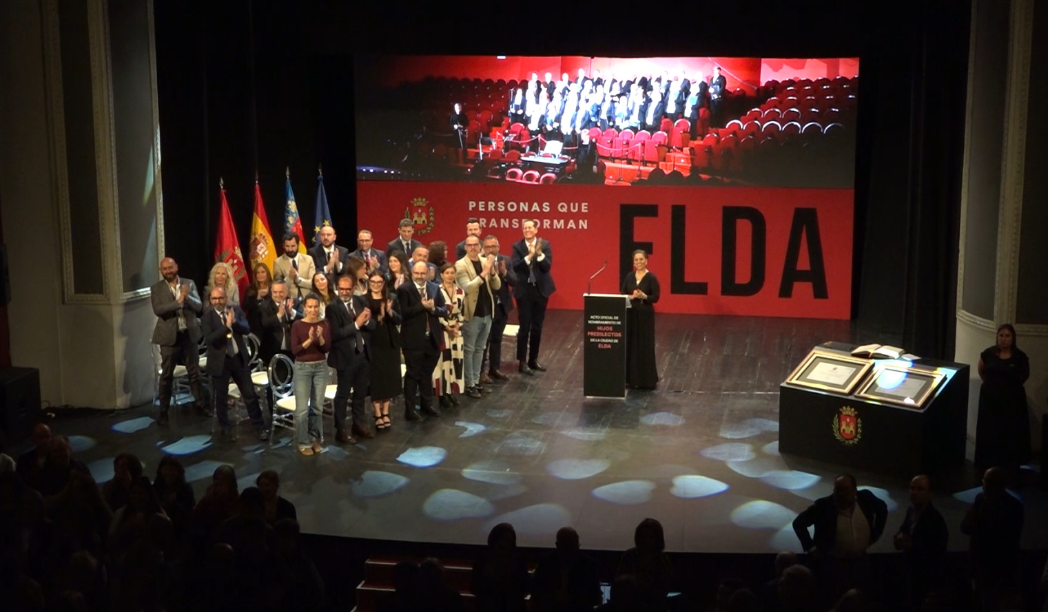 El Teatro Castelar, abarrotado de público, acogió un acto institucional cargado de sentimiento que contó con la asistencia de la Corporación Municipal al completo. La ciudad de Elda vivió una jornada histórica con la entrega de los títulos de Hija e Hijo Predilectos a Mari Carmen Segura Almodóvar y Andrés Molina Giménez, en reconocimiento unánime a sus trayectorias ejemplares y a su contribución social, cultural y humana.