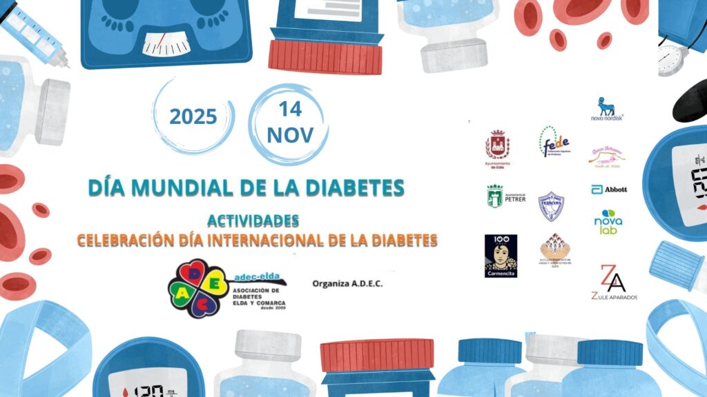La programación incluye, además, la charla ‘Diabetes: Innovación y Futuro’, que será impartida el viernes 14 de noviembre, a las 18.30 horas, por el jefe del Servicio de Endocrinología y Nutrición del Hospital de Elda, José Manuel Ruiz Palomar, y la enfermera del Hospital de Elda, Beatriz Pérez Requena, en los Salones Princesa.