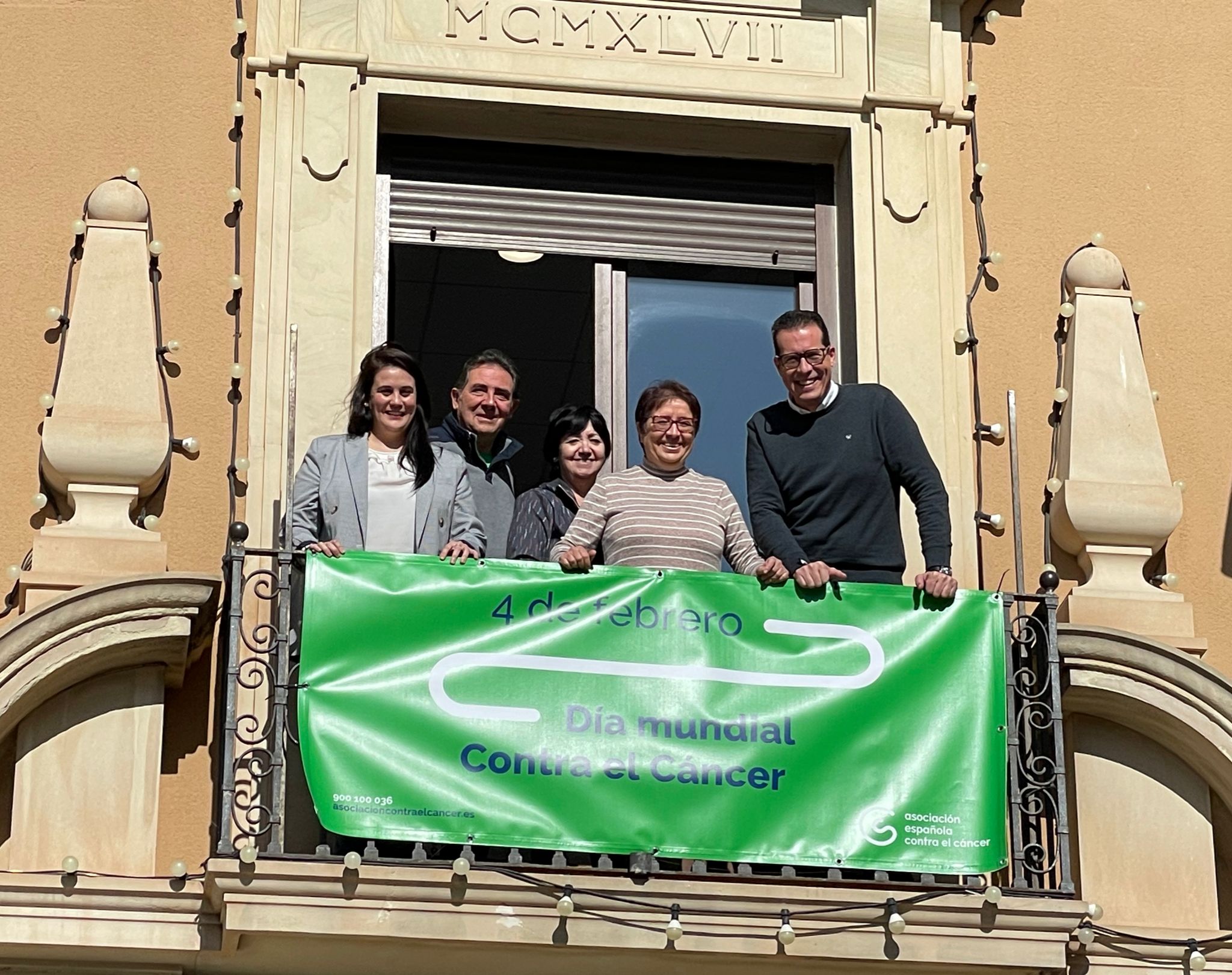 1 de febrero de 2024.- Elda se ha sumado hoy a la celebración del Día Mundial contra el Cáncer con la colocación de una pancarta en el balcón del Ayuntamiento. En este acto han participado miembros de la Corporación Municipal, con el alcalde Rubén Alfaro a la cabeza, la presidenta de la Asociación contra el Cáncer en Elda-Petrer, Ana Juan y otros representantes de la entidad. Aprovechando la conmemoración de este día, el Ayuntamiento de Elda ha firmado un convenio de colaboración con la Asociación contra el Cáncer en Elda-Petrer.
