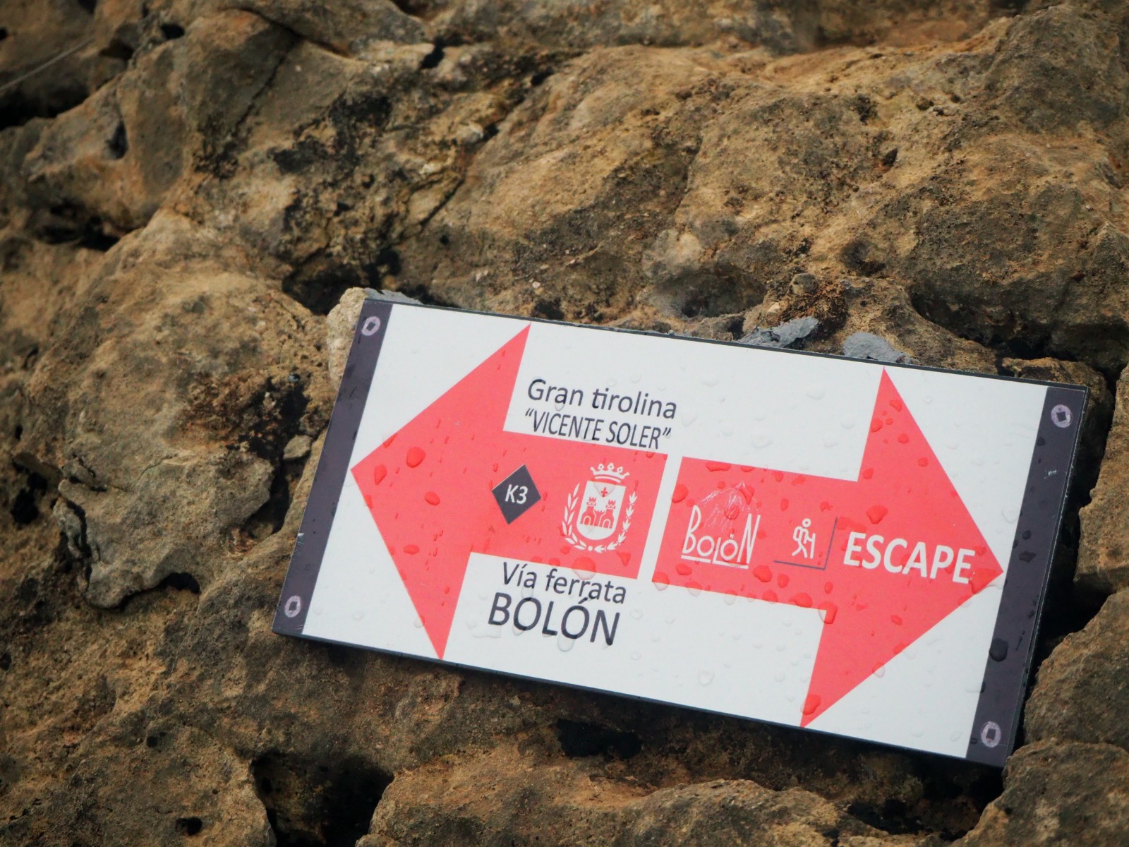 Elda, 4 de diciembre de 2022. La tirolina de la recién inaugurada vía ferrata del Bolón lleva el nombre de Vicente Soler Alcaraz, montañero de Elda que falleció el 9 de septiembre pasado en un accidente en el barranco del Maigmó.