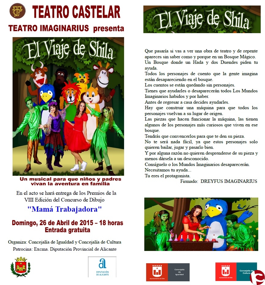 Los premios se entregarán al alumnado en el Teatro Castelar, el día 26 de Abril de 2015 a las 18 horas, al inicio de representación teatral » El Viaje de Shila» .