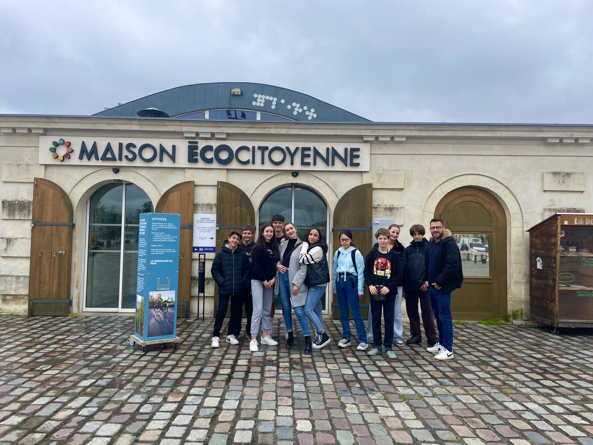 El tercer día visitaron el “Darwin-Eco-système”. Un espacio muy singular que se encuentra al otro lado del río Garona. Se trata de una antigua área de almacenaje industrial que ha sido rehabilitada en todo un conjunto sostenible y alternativo que se autoabastece así mismo y donde disfrutaron de un desayuno ecológico en una de sus áreas llamada «Magasin général” que es la cantina/bistrot ecológica más grande de Europa, curiosamente decorada con objetos reciclados y vintage. Seguidamente, los alumnos hicieron un recorrido por el huerto ecológico; el skatepark interior más grande de Europa; un gran edificio de “co-working” donde les explicaron el funcionamiento de la calefacción industrial;  los talleres de carpintería; un instituto alternativo donde las aulas eran antiguas caravanas de camping recicladas; grandes boutiques de ropa de segunda mano y libros, etc.