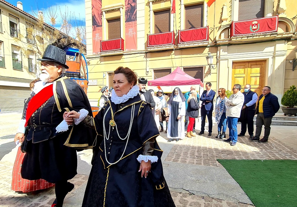 Hay que recordar que la Feria de Comercio Medieval de Elda, que este año ha alcanzado su 21º edición, se ha denominado Mercado Coloma coincidiendo con la declaración de 2022 como ‘Año Coloma’. De hecho, diferentes actores recrearon a personajes de la época, incluida la familia Coloma con un séquito de 15 personas. Además, para ambientar la época, todo el recinto contó con estandartes, banderolas, toldos, telas de colores, telones, tiras de ondas rematadas en flecos y madroñera, tapicerías, etc.
