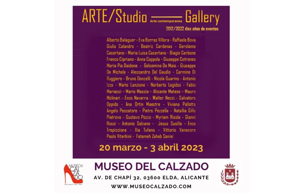 La exposición «Arte/Studio – Gallery. 2012/2022 diez años de eventos», en Museo del Calzado del 20 de marzo al 03 de abril de 2023, aglutina a un colectivo de artistas incluido en el catálogo de la galería de arte contemporáneo, con sede en Benevento (Italia), publicado con motivo del décimo aniversario de su fundación.