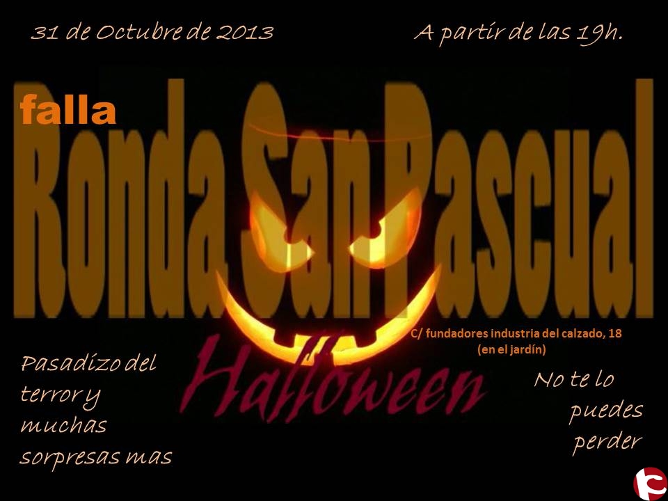fiesta de Halloween de la falla ronda san pascual y el cartel del evento no se lo pueden perder la fiesta promete grandes sustos y risas baja y colabora con la falla ya que es el 10º aniversario también les dejo el logotipo que nos acompañara este año por el 10º aniversario gracias el jueves 31 os esperamos en el jardín de la calle fundadores del calzado junto parroquia de san pascual