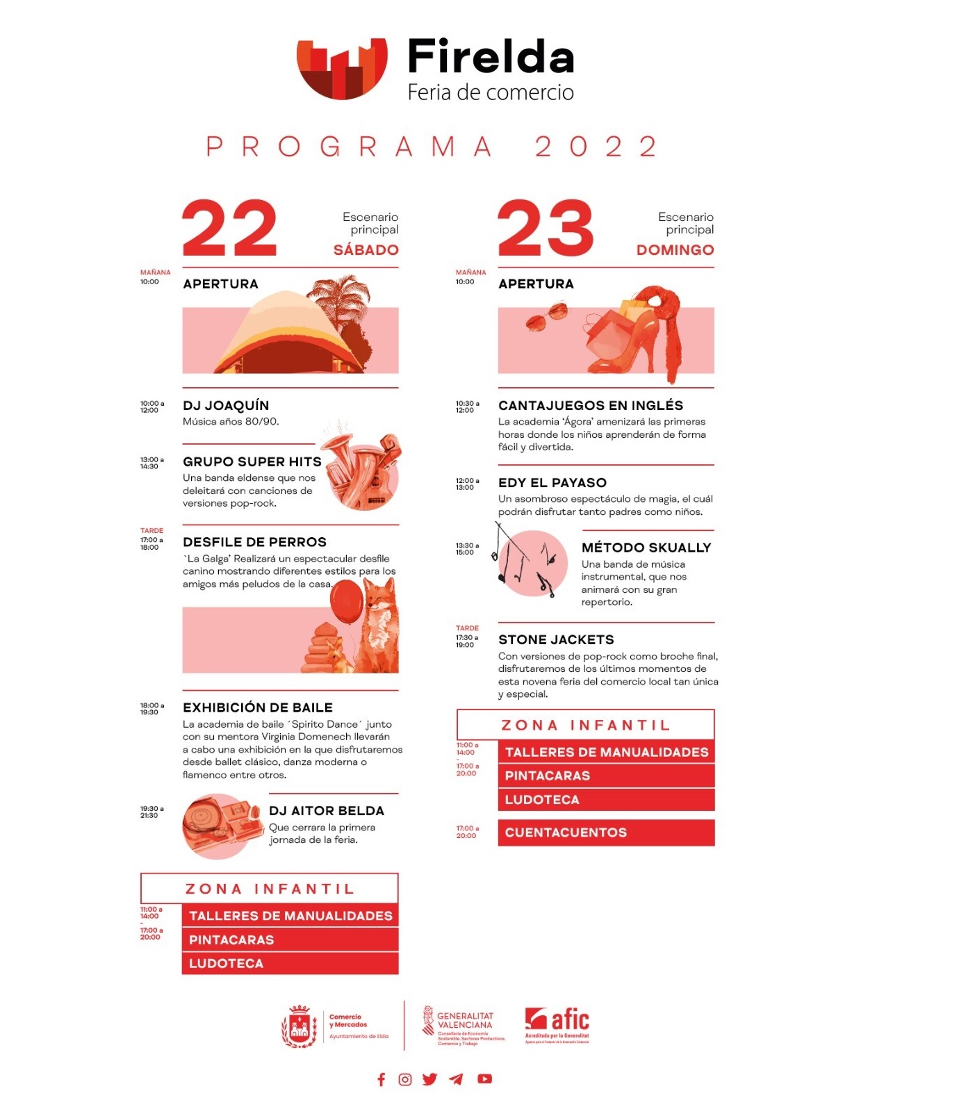 14 de octubre de 2022.- Los días 22 y 23 de octubre se celebra en la Plaza Castelar la novena edición de Firelda, la mayor feria de comercio de la comarca que en esta ocasión da un paso más para acercar a los ciudadanos y ciudadanas y al comercio local un espacio rodeado de sensaciones y actividades que se realizarán para todos los públicos. El comercio, la gastronomía, la música y la animación se aúnan para ofrecer una experiencia sin igual.