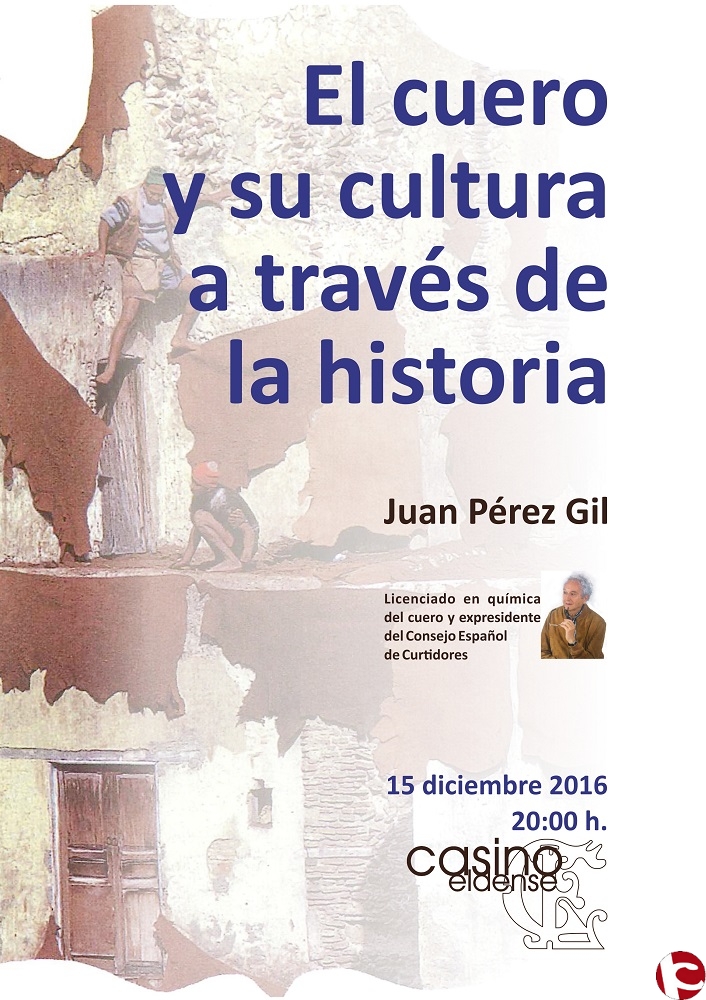 Hoy, jueves 15 de diciembre se presenta en el salón Noble del Casino Eldense una conferencia sobre “El cuero y su cultura a través de la historia”, a cargo de Juan Pérez Gil.