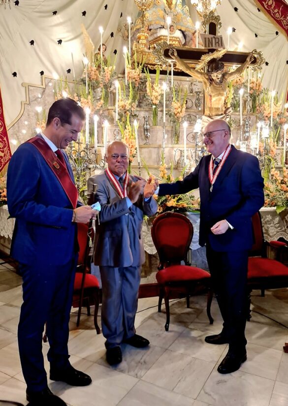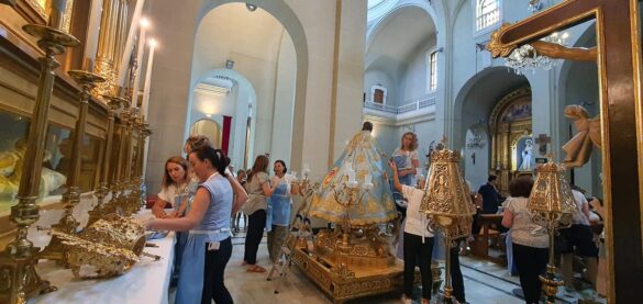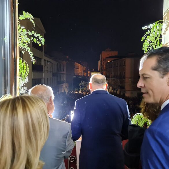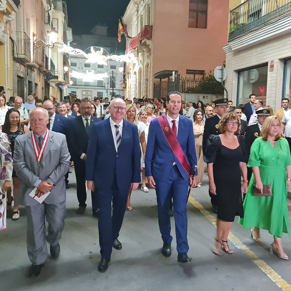 Seguidamente, el pregón desde el Ayuntamiento a cargo de Emilio Maestre, un gran conocedor de la historia y tradiciones de Elda y que sigue realizando una gran labor de divulgación e investigación del legado y patrimonio. y posteriormente saluda a los Santos Patronos, disparo de la palmera y la Alborada. Pero antes, por la mañana a las 12 horas, se recuperó el vestir a la Virgen de la Salud con las puertas de la Iglesia de Santa Ana abiertas.