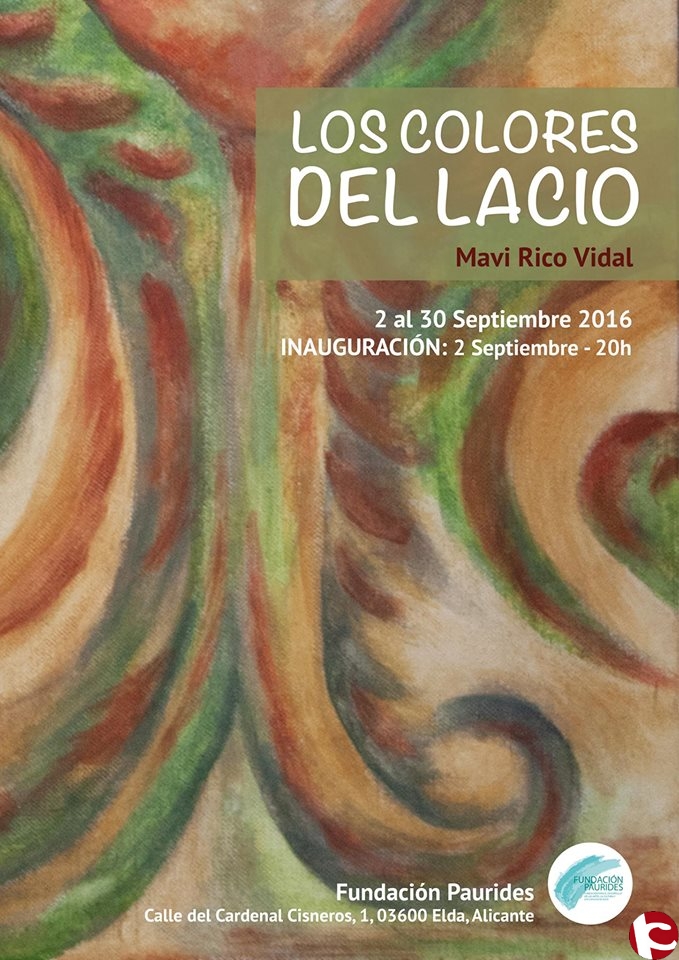 Iniciamos el mes de actividades de la Fundación Paurides con la exposición «Los colores del Lacio» una obra de la artista eldense Mavi Rico Vidal.
