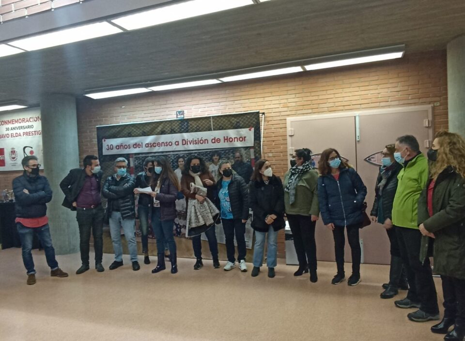 La concejala de Igualdad y Mujer, Alba García, acompañada del edil de Deportes, Fernando Gómez, inauguró ayer en el Pabellón Ciudad de Elda-Florentino Ibáñez la exposición ‘30 años del ascenso a División de Honor del Club Balonmano Femenino Elda Prestigio’. Se trata de una muestra organizada por la Concejalía de Igualdad y Mujer y la Unidad de Igualdad del IMSSE que rememora uno de los momentos más importantes en la historia del deporte eldense y que, además, en enmarca en los actos de celebración del Día Internacional de la Mujer.