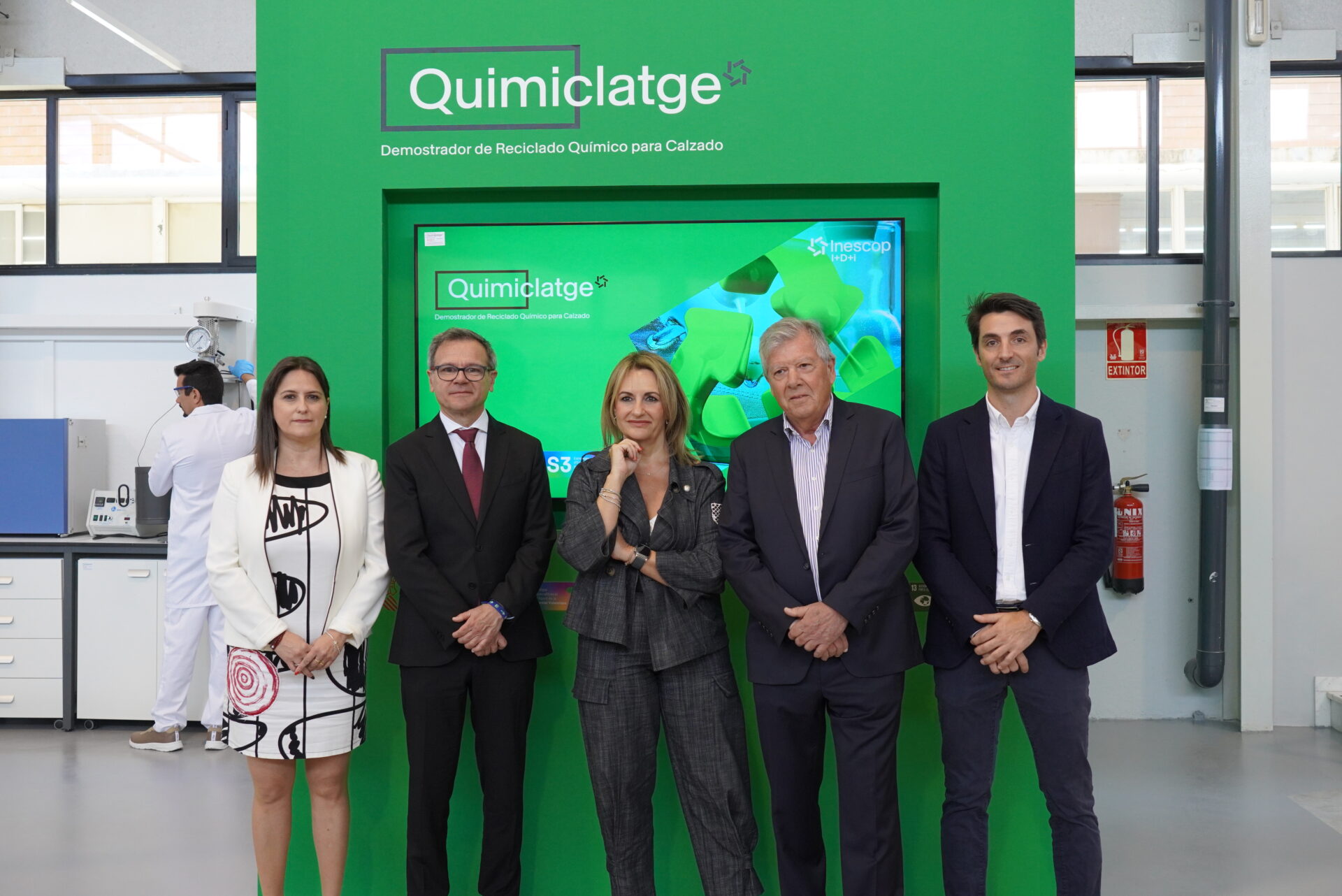 La consellera de Innovación, Industria, Comercio y Turismo, Nuria Montes, ha inaugurado junto al director general de Innovación, Juan José Cortés, un espacio demostrador con tecnologías de reciclado químico enfocado a la revalorización de residuos de la industria del calzado. Hasta la fecha, el sector del calzado podía reciclar mecánicamente, pero con el reciclado químico, INESCOP da un paso más allá en la mejora de la sostenibilidad del sector. Este demostrador, que responde al nombre de QUIMICLATGE, ha sido posible gracias a la financiación de la Conselleria de Innovación, Industria, Comercio y Turismo.