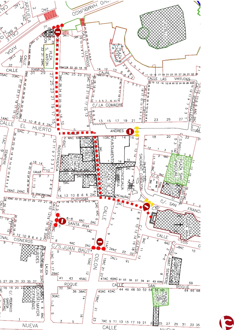 Intervención Mpal: Al objeto de consultar en Policía Local cualquier tipo de Reserva de Espacio o Interrupción Temporal del Tráfico que pueda solicitarse en las calles que configuran el itinerario o sus adyacentes